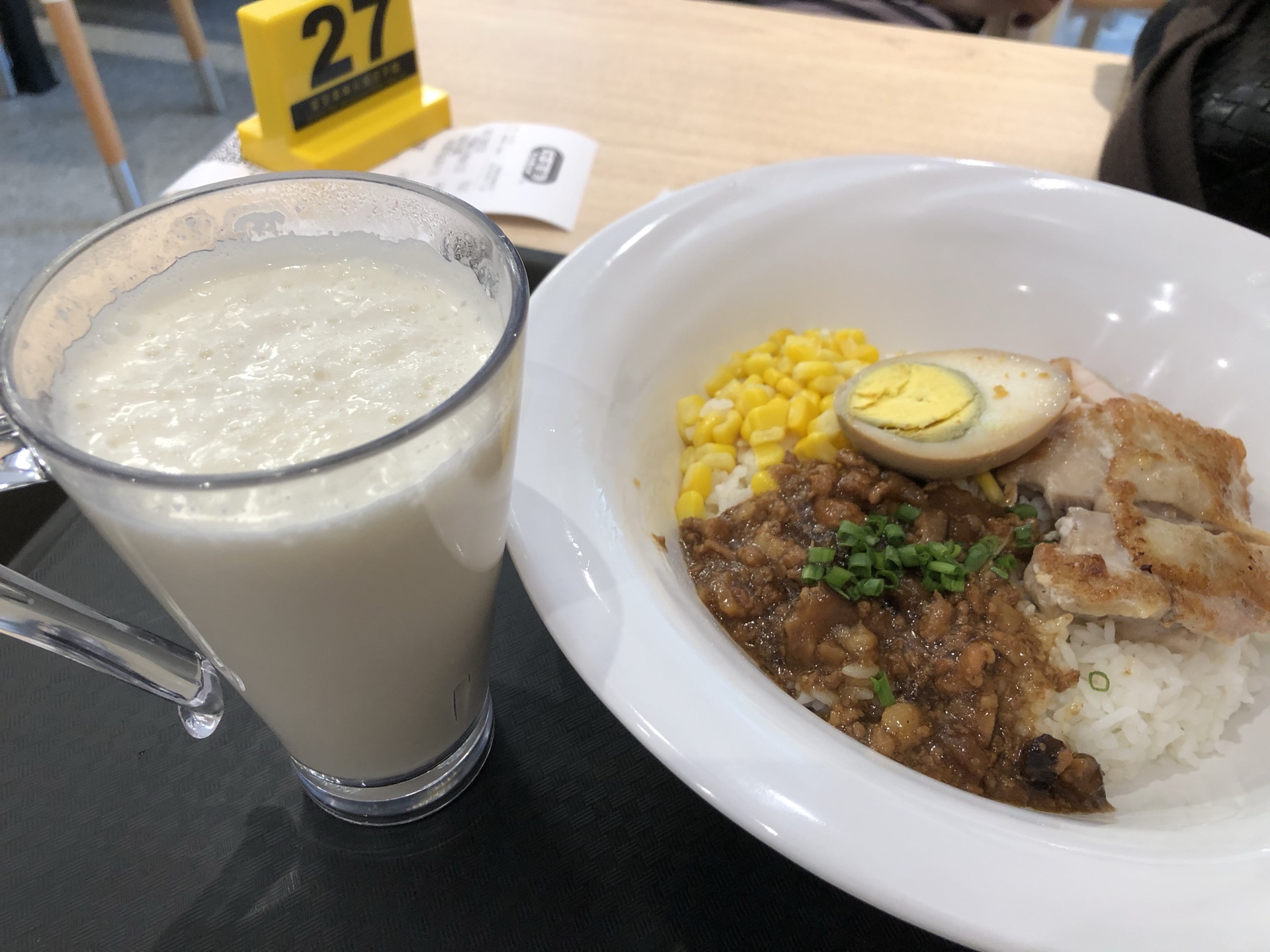 新开的商业区,快餐服装店什么的都挺全的。这家快餐出品就是快,点完餐去了个洗手间回来就上菜了。这款餐食碗边儿可真够大的,正常量的餐食,就是碗看着夸张。杏仁蛋白味甜挺纯香的味道。在这里吃主要是为了方便,人不算多,味道可以。