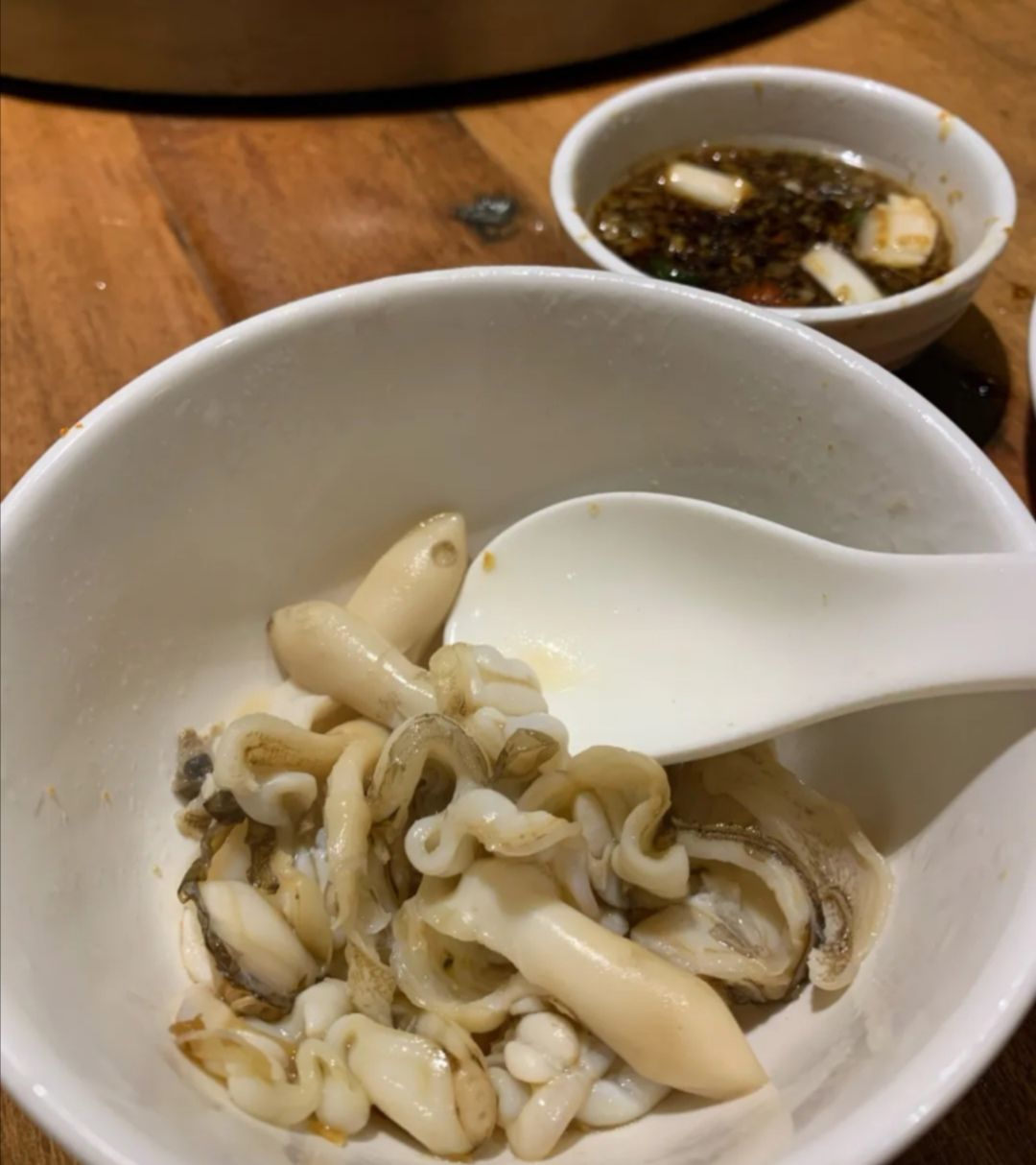 ...而变成鲜美无比的菜粥,白贝吃的很鲜美,大罗氏虾有膏有籽,肉饱满有弹性,蛏子也很新鲜,脆嫩,好吃很浓稠的粥,从一锅清粥,经过烫煮海鲜,肉,青菜,从而变成鲜美无比的菜粥,白贝吃的很鲜美,大罗氏虾有膏有籽,肉饱满有弹性,蛏子也很新鲜,脆嫩,好吃。