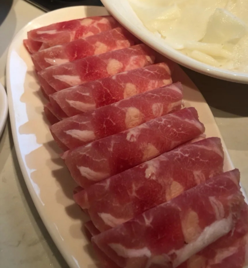 首先,服务员都很好,会帮忙套衣服,看我们等人无聊还送水果。说到菜品,川火锅必点毛肚,渝利家的毛肚出品还是很好的,量略少,人多两盆一下子就没了。雪花牛肉好吃,很美味的一大片,瞬间就被抢光了。渝利秘制午餐肉:这个午餐肉好吃,含肉量比较高,煮后还比较嫩。
