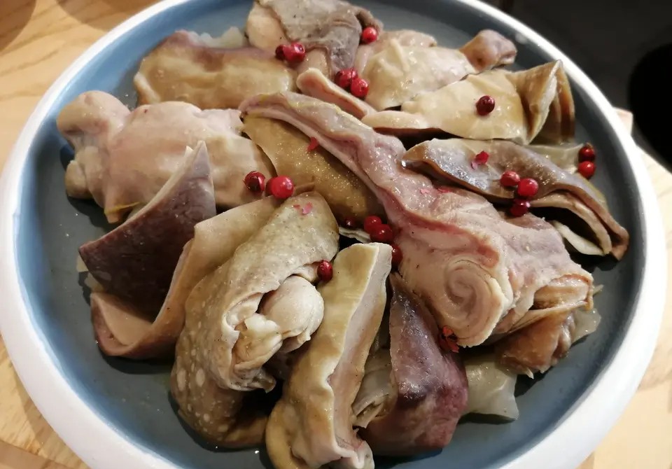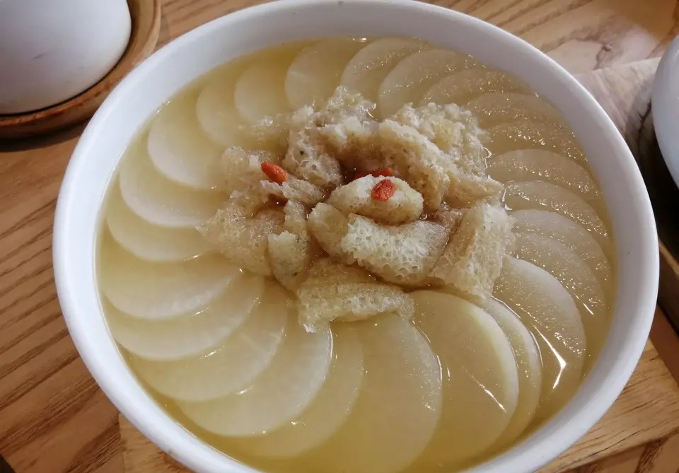 环境:通透明亮的玻璃,原木色的色调,让人心情愉悦。 客汀,看这店名就知道这是做客家菜的,客家人热情好客, 所以美食也是满满当当的一大桌。 入座后,先送上茶水和一次性湿巾,这和普通的湿巾不同, 有点像压缩面膜纸,直接用水浸湿,就自然膨胀。 先餐前水果开开胃,然后依次性送上美味。 客汀土猪肉汤:鲜甜的汤汁,暖暖被寒风吹凉的胃,就是肉质有点柴。 白切河田山地鸡:油光发亮的鸡皮,看着颜色不一的酱料,感觉还不错,不过鸡肉有点干涩,不像之前吃过的肉质细腻。 巴西红胡椒猪肚:这道菜还蛮特别的,用的是巴西红胡椒,刚好适合降温的天气,入口脆弹,猪肚下还加了些像银耳的食材,口感不错。 汀州芋子包:超爱这款芋子包,芋子皮糯糯的,内馅咸香入味,十分好吃。 服务:点赞,细心到位,因疫情原因,还隔桌用餐。