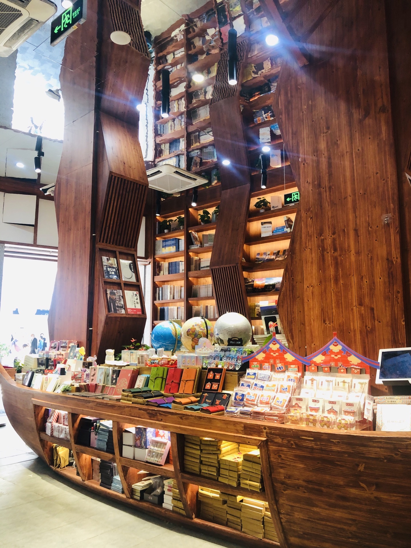 重新装修后的新华书店环境太赞了,一楼就多了好多座位,书本摆放也井井有序,入口处有艘船,摆放不少纪念品