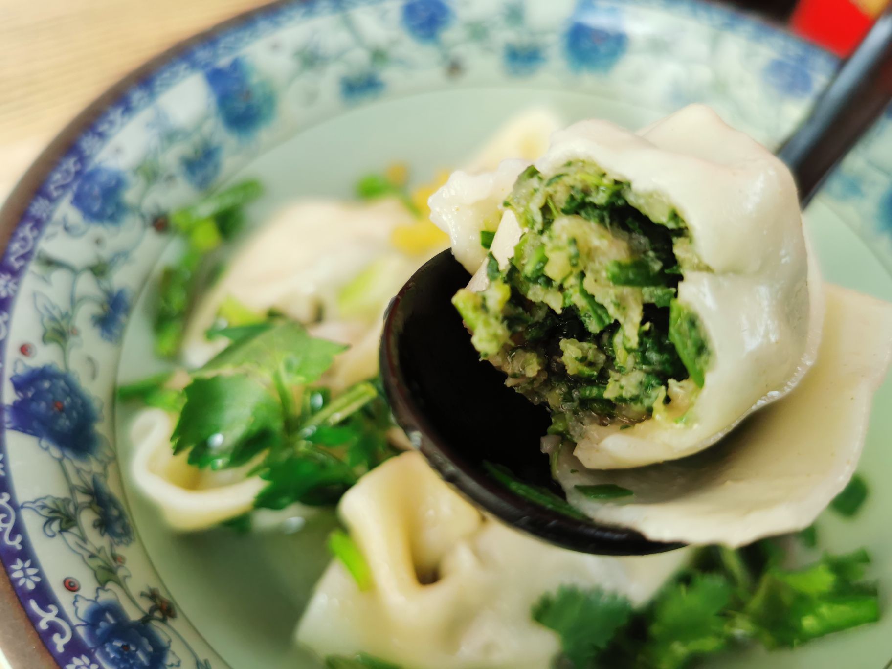 一碗荠菜馄饨,个头大而且汤头里边还放了猪油呢,就是那么喜欢荠菜调味的十分鲜美