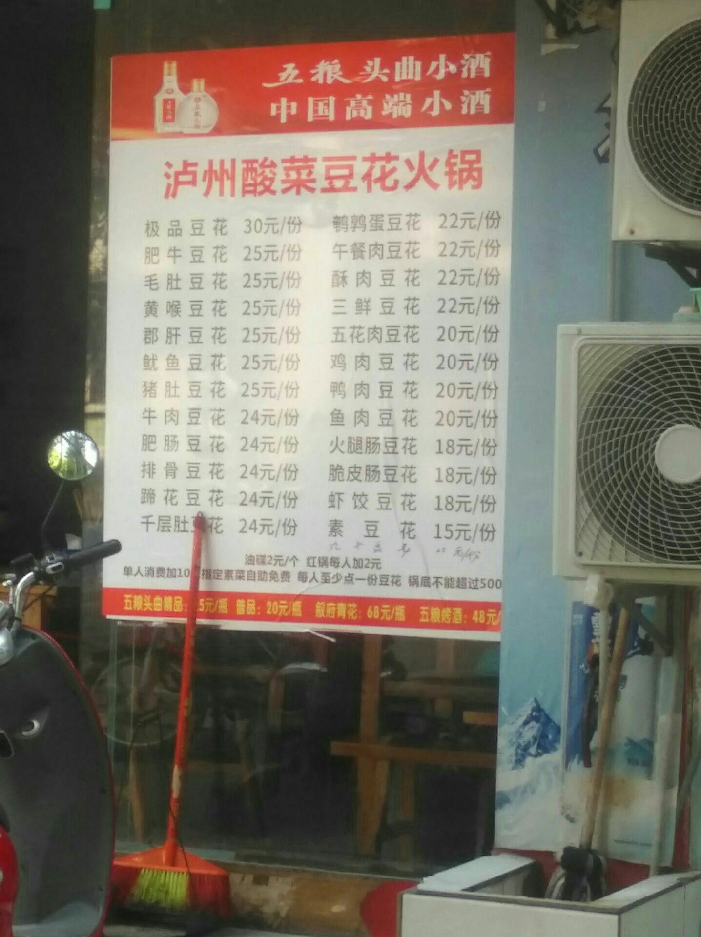 网友2020-04-15泸州酸菜豆花火锅位于大千国际酒店旁边的桐梓巷,一般一个人点一份豆花就行了,荤素搭配得挺好的,煮...泸州酸菜豆花火锅位于大千国际酒店旁边的桐梓巷,一般一个人点一份豆花就行了,荤素搭配得挺好的,煮在一个清汤锅里,颤巍巍拈起来配上蘸水送进嘴里,入口即化,味道不摆了