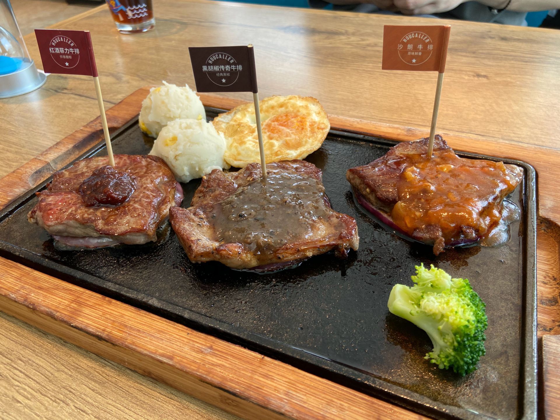 ...,三瓶的牛排可太赞了,一次性就可以吃到三种口味,然后它家的小食也是我比较喜欢的,每次过去都会点