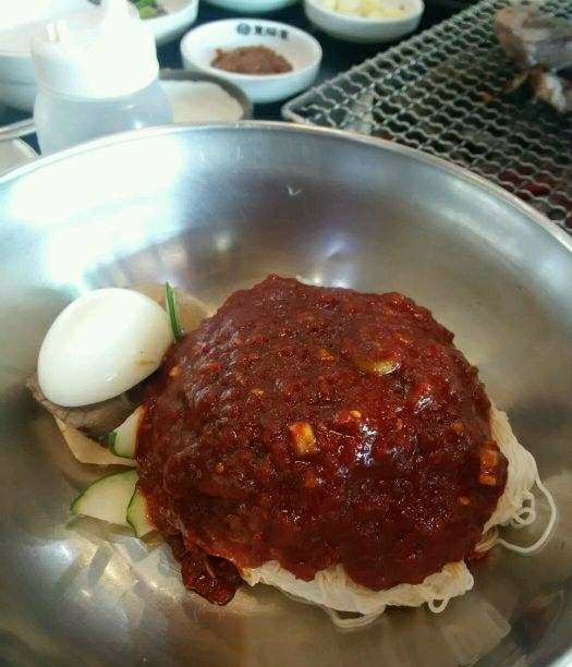 网友2020-04-15看完雪再吃暖暖的烤肉,真舒服啊!午饭是吃烤黑豚猪肉午饭是吃烤黑豚猪肉。看完雪再吃暖暖的烤肉,真舒服啊! 猪肉还是任吃的,这家店是这条街人气最旺的店,连本地人都说味道不错。两人份的黑猪肉39000韩元。