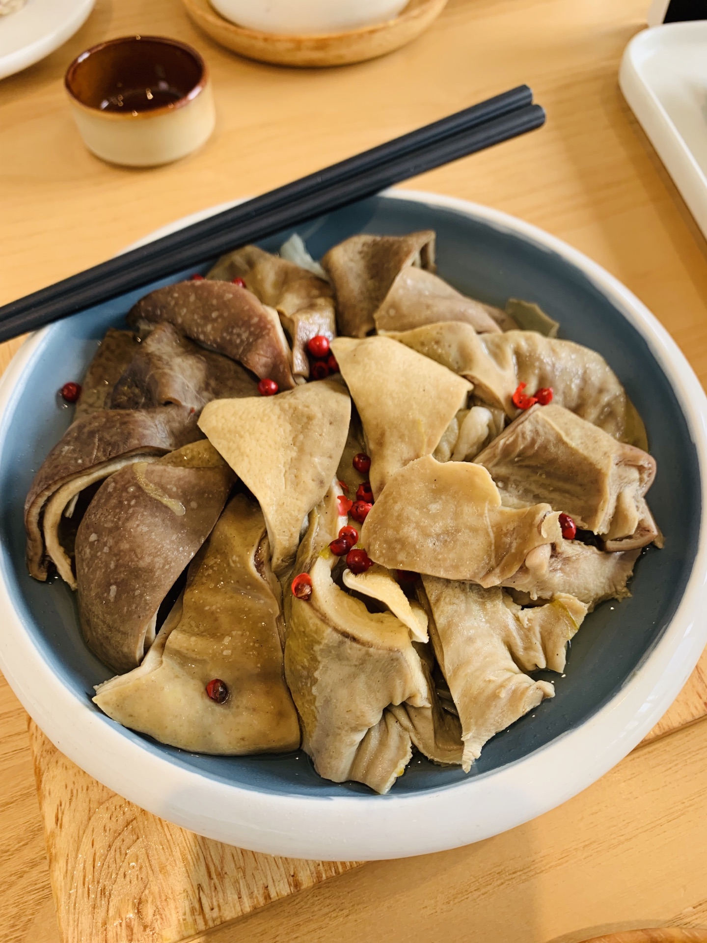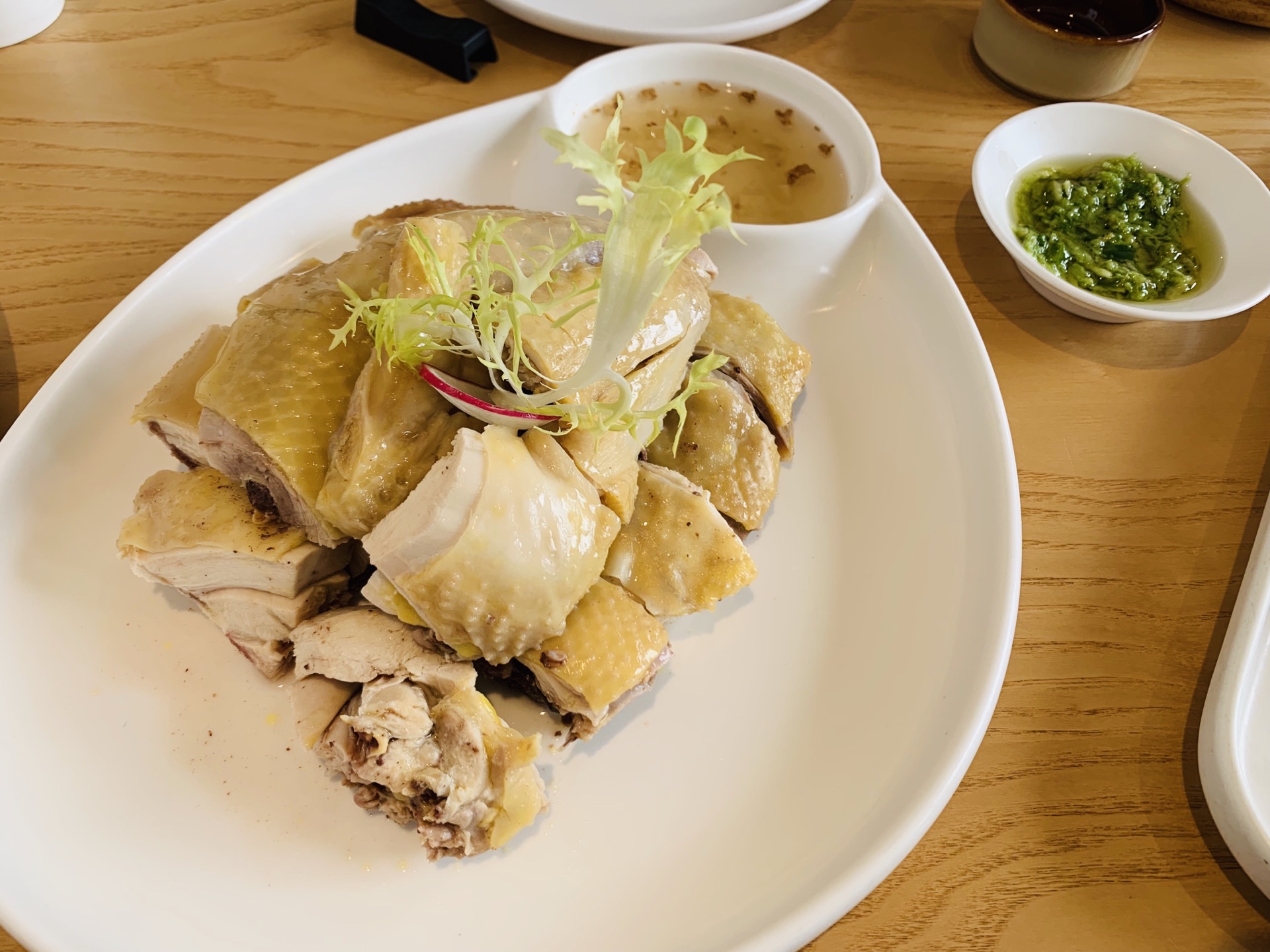 在宝龙一城顶楼,艺术中心这里。店装修得很舒服,原木➕白色调,赏心悦目。两个人的这菜,份量相当足。几道菜都是清新爽口的。土猪肉汤好喝,不油不腻。鸡纵菌菇,手拨笋,都很健康又好吃。胡椒猪肚,猪肚很厚很脆。白切鸡,一定要粘酱汁吃才有味道。
