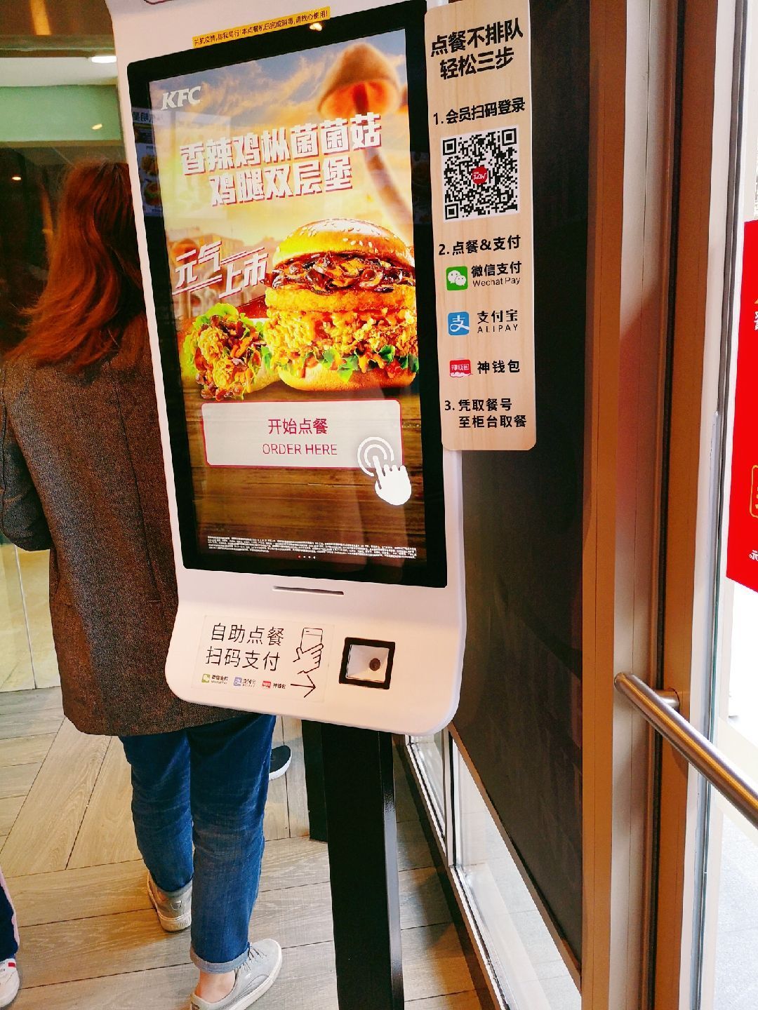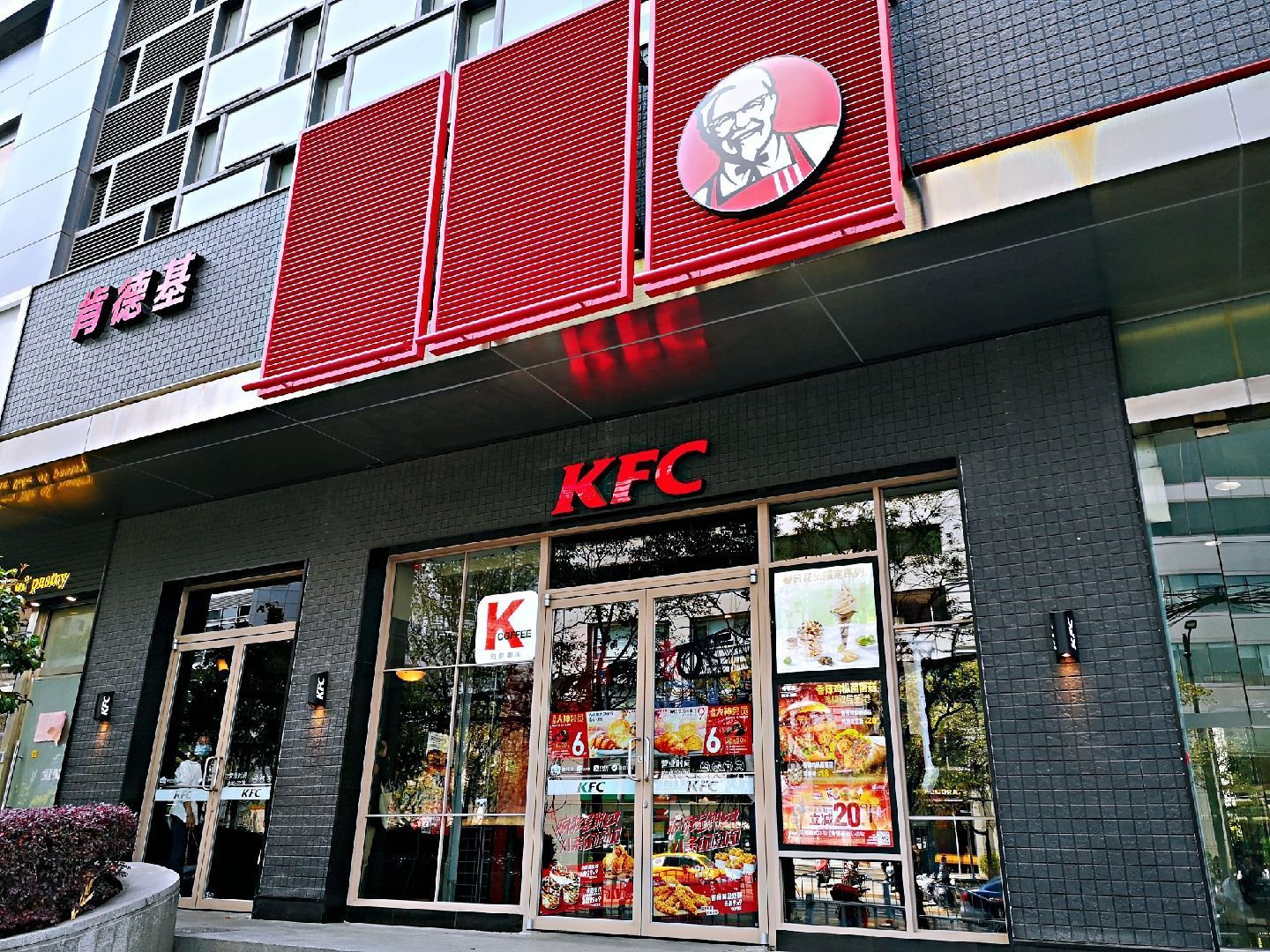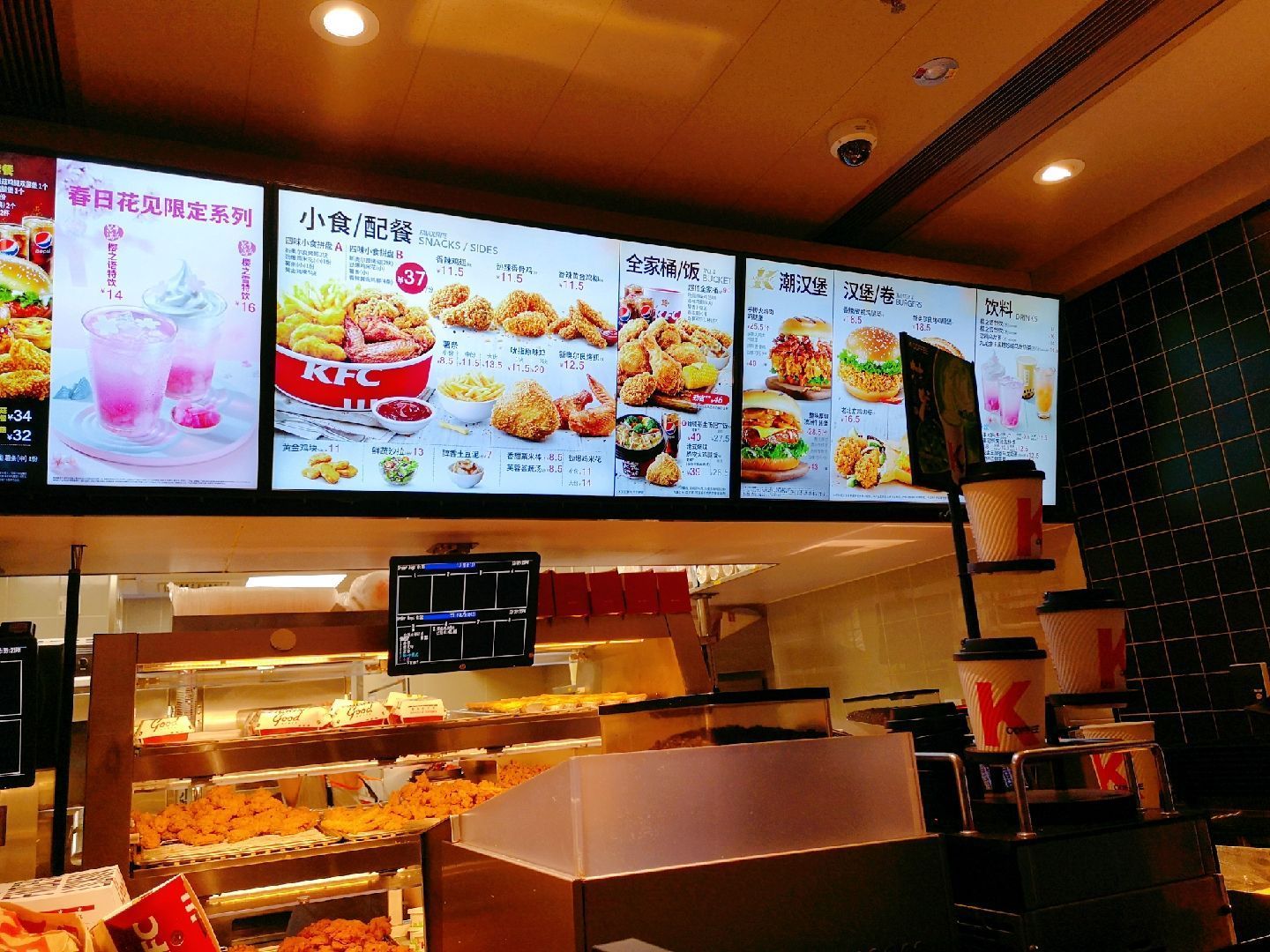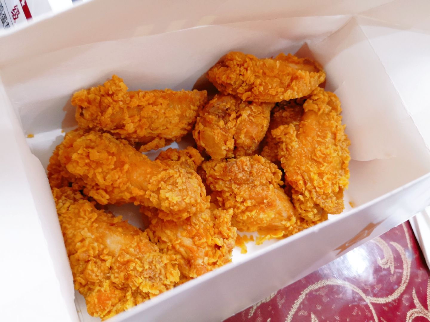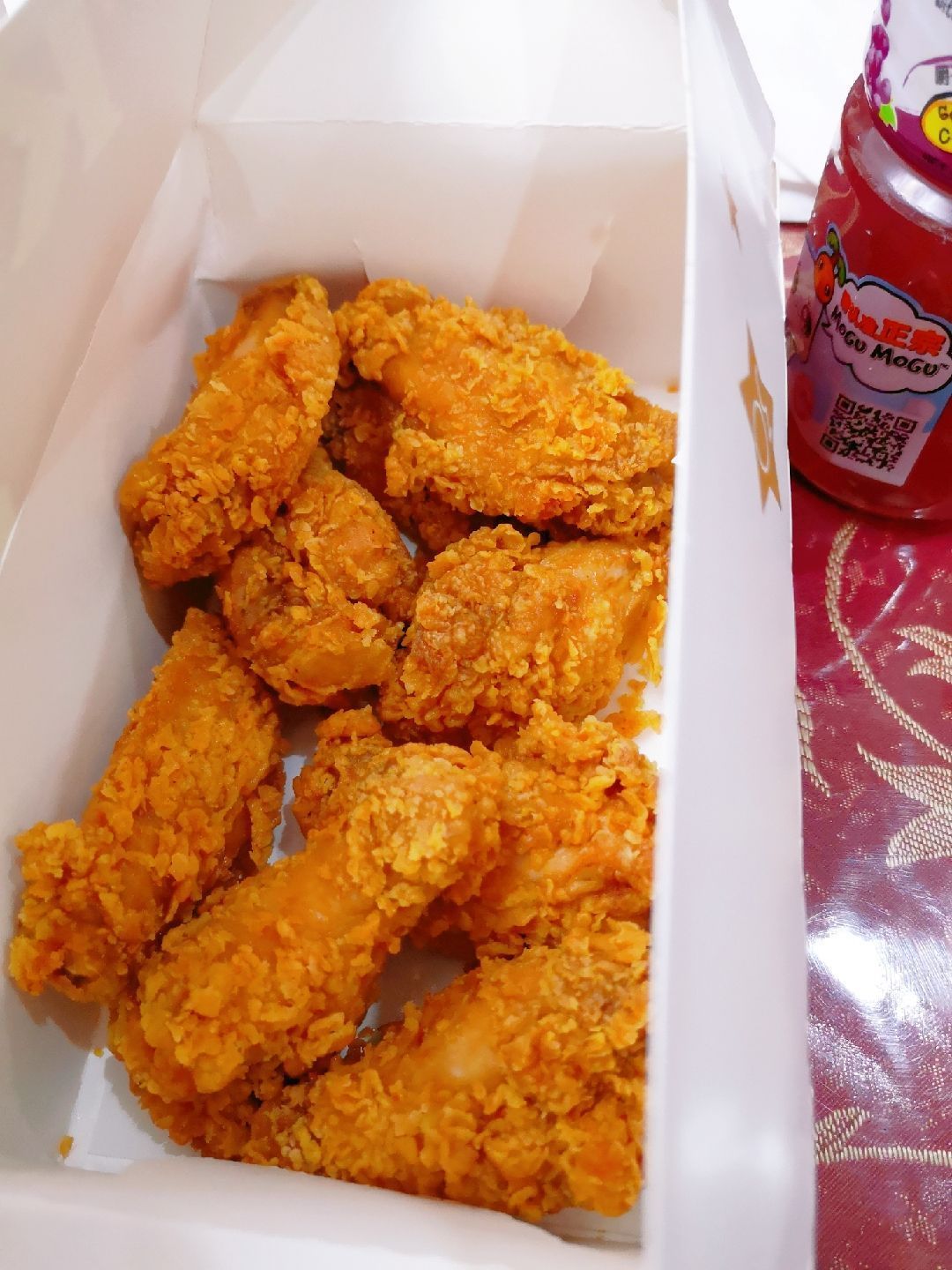 午餐吃什么?大家你看我,我看你,排排坐,想一想。看着家里的2个小姑娘,要不咱吃肯德基吧。 环境:去了位于江苏路的门店,门面不大,一楼用小程序优惠的必须去自助点餐机点单,其他可以去点餐区点单。 现在提倡无接触,二楼是取餐处,可是放眼望去,店里已经座无虚席,都是堂吃的客人,正是中午用餐高峰时间,附近商务楼的白领都来用餐了。 服务:楼下点餐处就一位服务生,大家排队点餐让她工作非常繁忙,不过态度还是挺好的,我在小程序上有优惠券,还在点评上团购了,咨询过知道需要去自助点单机上操作还去她那里打单。二楼取餐处的服务生也很好,本来我的订单已经打包装好,因为我提出汉堡需要双酱,所以帮我重新去制作了。 |香辣鸡腿堡^就喜欢吃辣鸡腿堡,这次辣味没吃出来,不会给我原味的了?! |香辣鸡翅^还是团购10份的划算,半年内可以随意领取,这波操作可以有。 |醇香土豆泥^这个是小侄女的最爱,的确很好吃。 本来在各类团购中挑花了眼,幸好爸妈明确了我们几个只需要辣汉堡和辣鸡翅的主题,其他各类搭配都不需要,让我明确了该买的餐品,骑着共享单车回家,大家享受干净又美味的一餐,吃饱肚皮还省的洗碗,午餐选肯德基还是明智的选择。