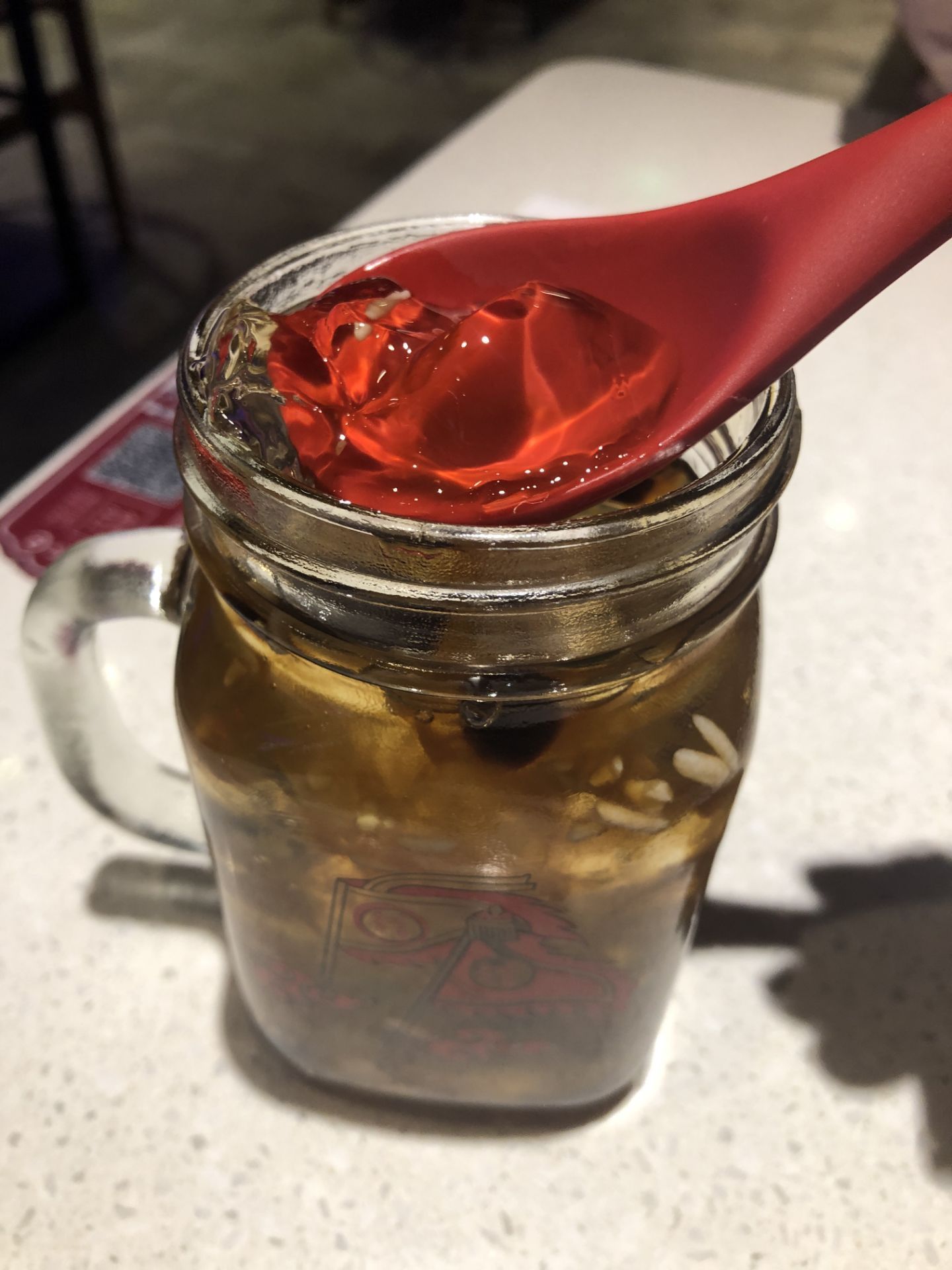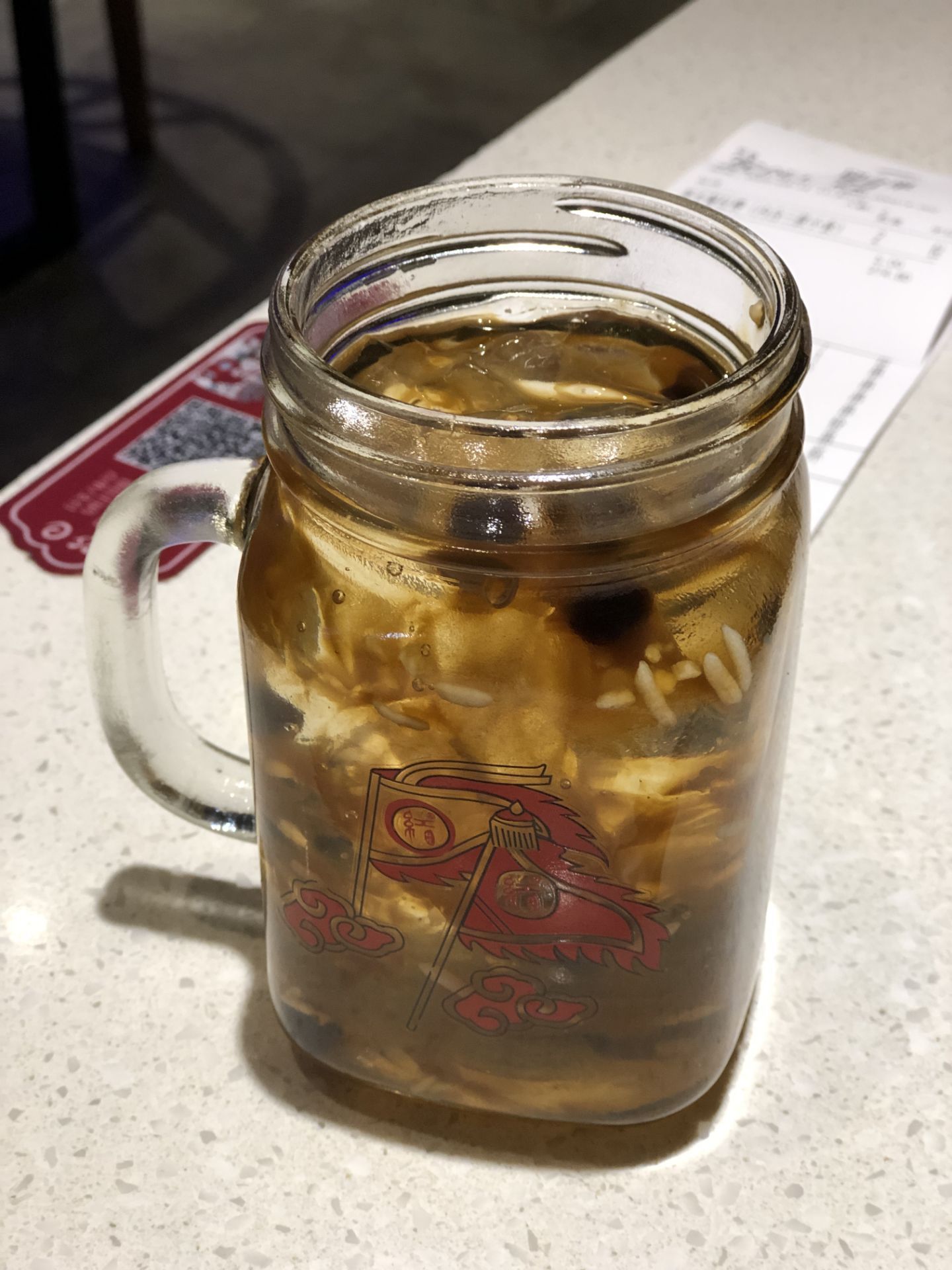 红料理上海吃过好多家了,莲花路的这家是去过比较偏远的一家了,餐前有小食,店内的装修还挺复古的,...红料理上海吃过好多家了,莲花路的这家是去过比较偏远的一家了,餐前有小食,店内的装修还挺复古的,这里的凉粉味道不错,是拿杯子装的,我一个人可以喝2杯。