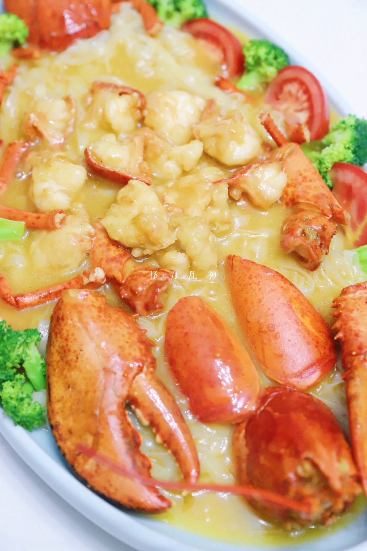 龙虾焗伊面是绝对的硬菜,切好的龙虾颜色鲜红,肉质饱满,雪白的龙虾肉好像要从虾壳中弹出一般,特别诱人