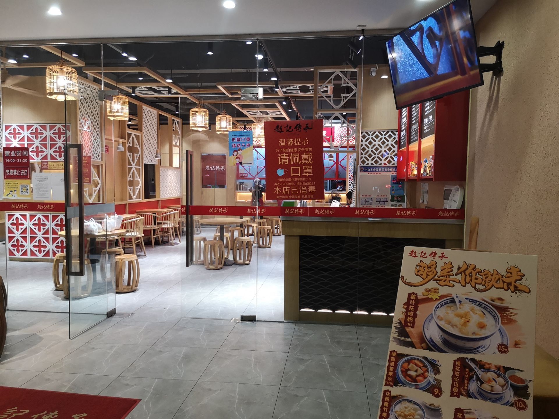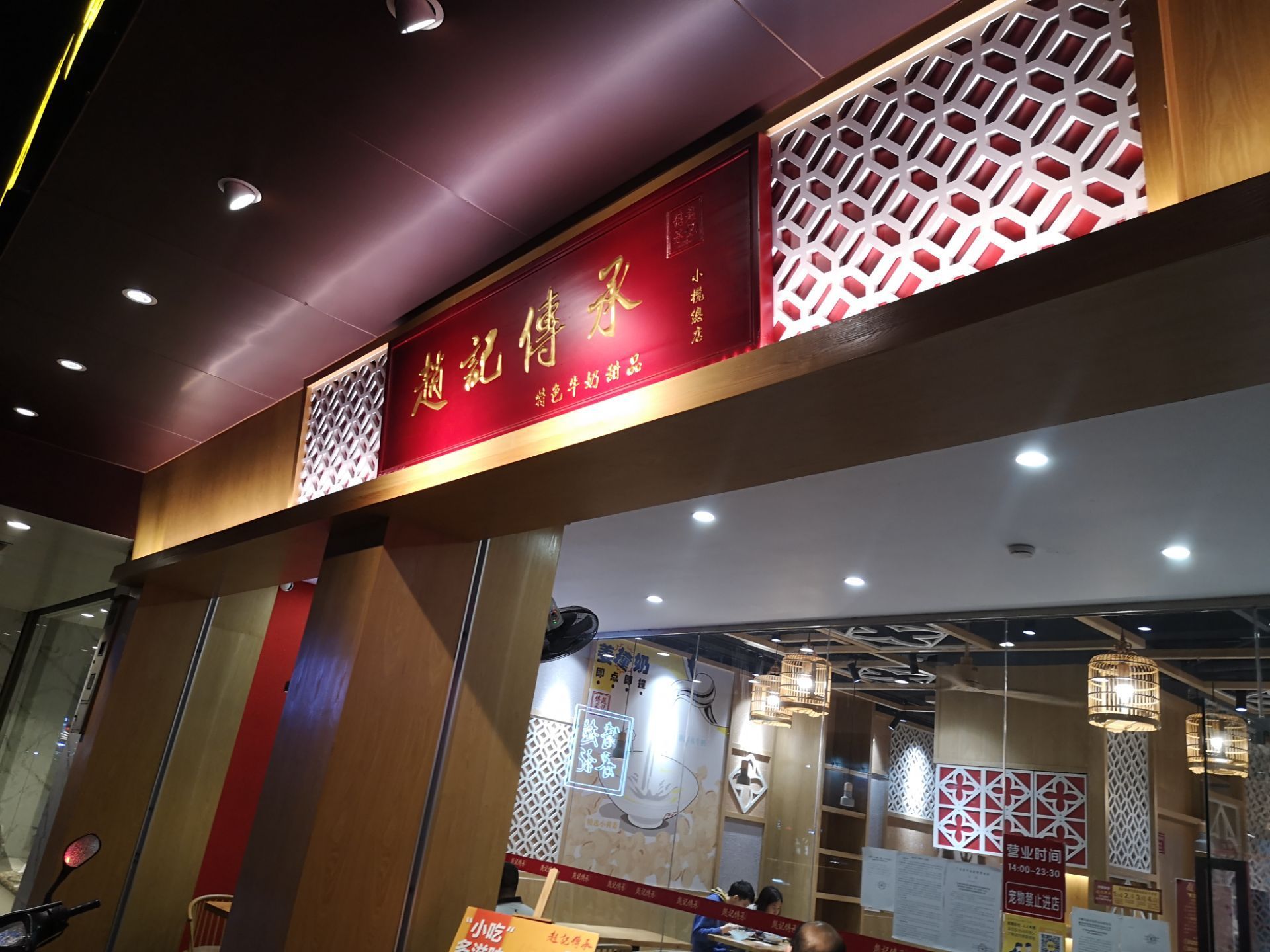 中山小榄这边也是比较多美食的,而且的话在这里是城镇的中心,附近都是比较热闹的商业区,晚上十点多出来吃糖水都还能够找到很多地方开业,赵记算是一个连锁的品牌,在这家店铺的旁边,还有对面都是糖水店铺来的。