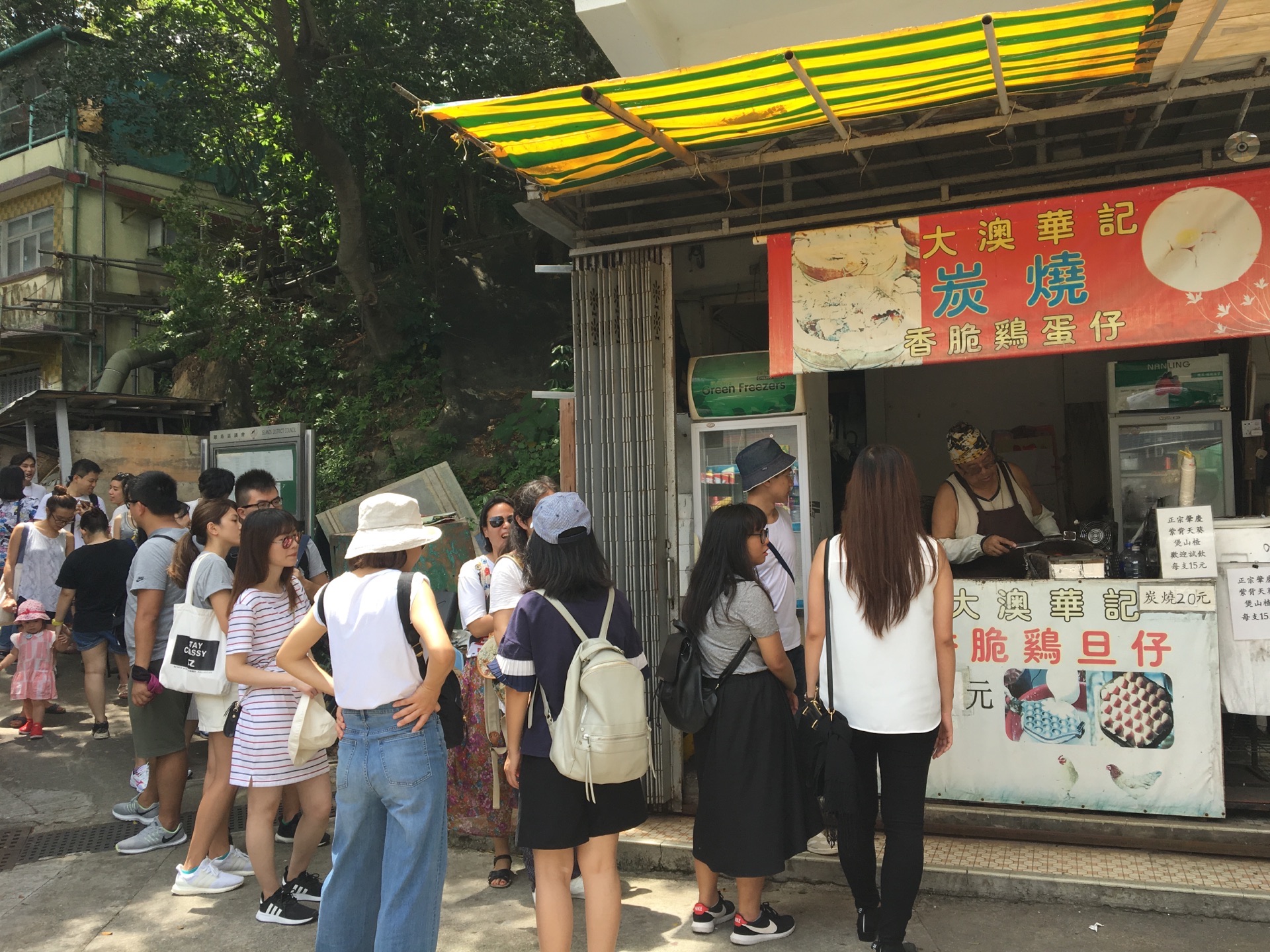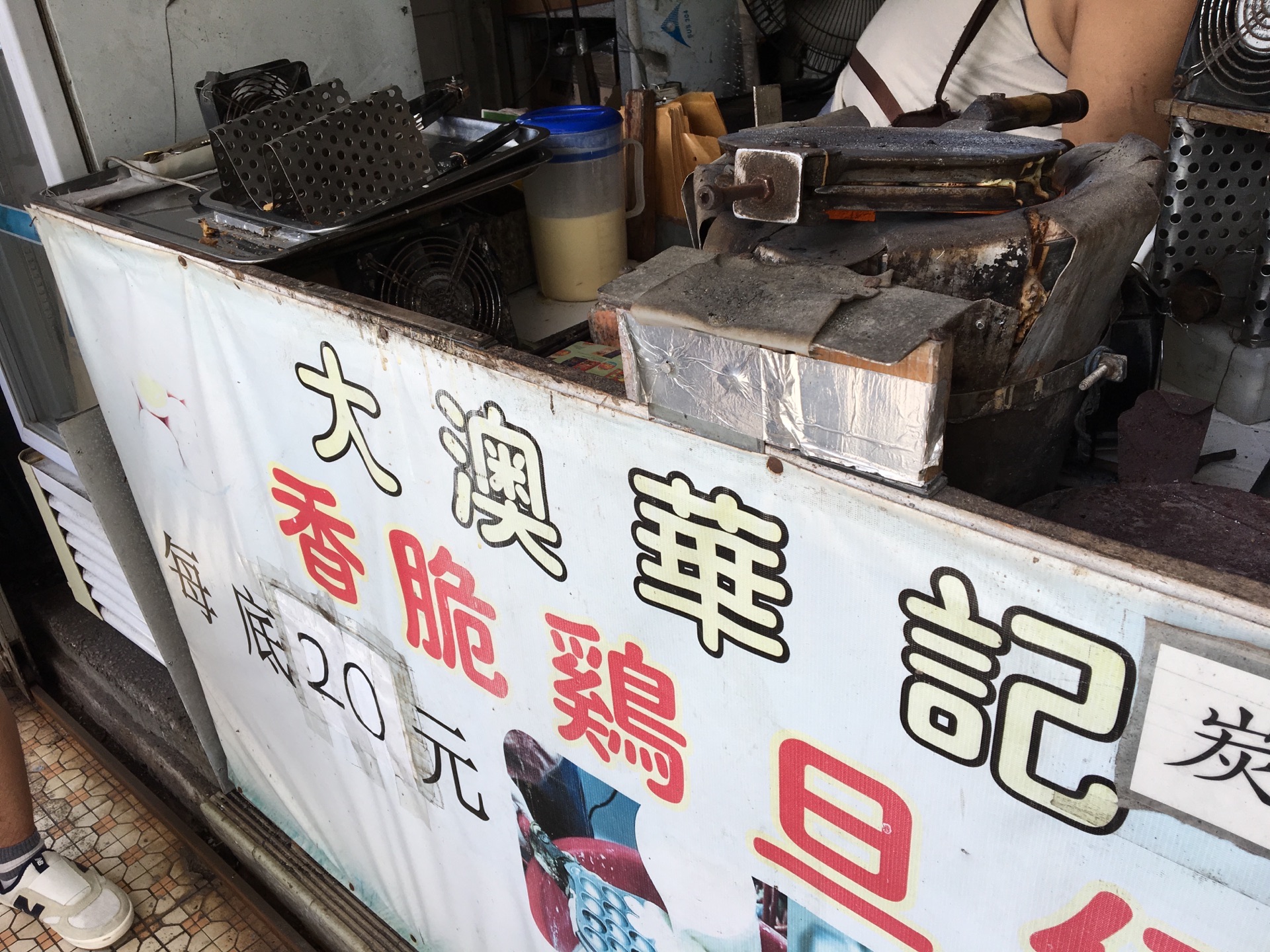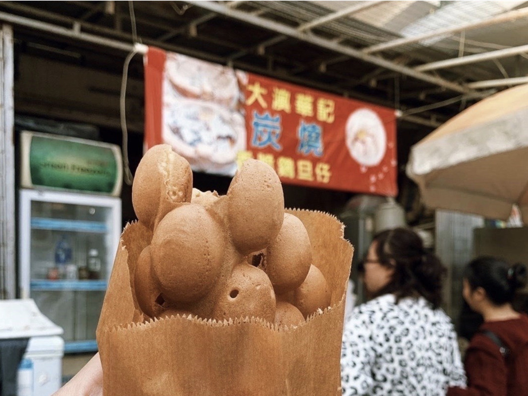 前往大澳文物酒店的路上,看见一家鸡蛋仔店前排好多人,比尖沙咀利强记鸡蛋仔的排队人还要多,不免好奇什么鸡蛋仔这么受欢迎。从文物酒店回来,人少了很多,就买上一个来吃吃看。果真与普通鸡蛋仔有不同,像利强记、妈咪鸡蛋仔都是电烤的,而华记是用炭火烤的,就只有一个炭炉,一个个的烤,怪不得速度那么慢。慢工出的是细活,刚烤好的鸡蛋 仔金黄香酥,香气浓郁,吃起来果真有一股碳烤味 ,真是很特别了。