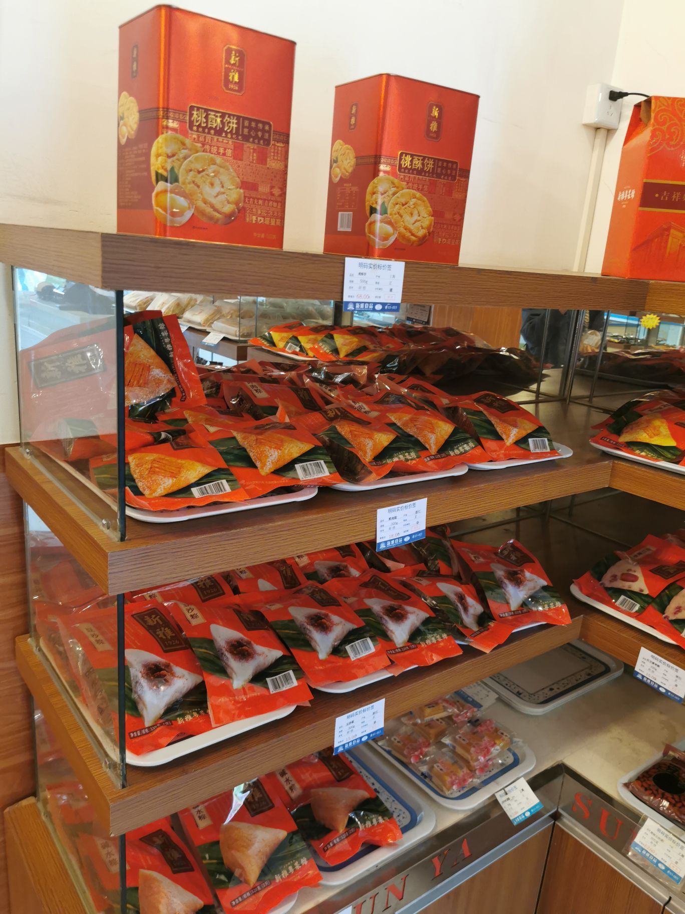 老牌子的新雅食品,偶尔买买还是非常不错的。他家开在大华也非常久了,新雅和杏花楼,虽然是互相两大知名的老字号,但是分工各有不同哦,个人感觉现在新亚里边往往大家都是买半成品菜的比较多。 这部走过路过就看看他家的冰柜里面有什么好货色的。 招牌的各种半成品蚝油牛肉八宝辣酱自然不用多说,现在在这里还有广州酒家利口福系列的广式点心哦,回去微波炉转一下,一顿早茶就搞定啦 更有知名品牌,鲜得来排骨年糕,意外之喜,哦。