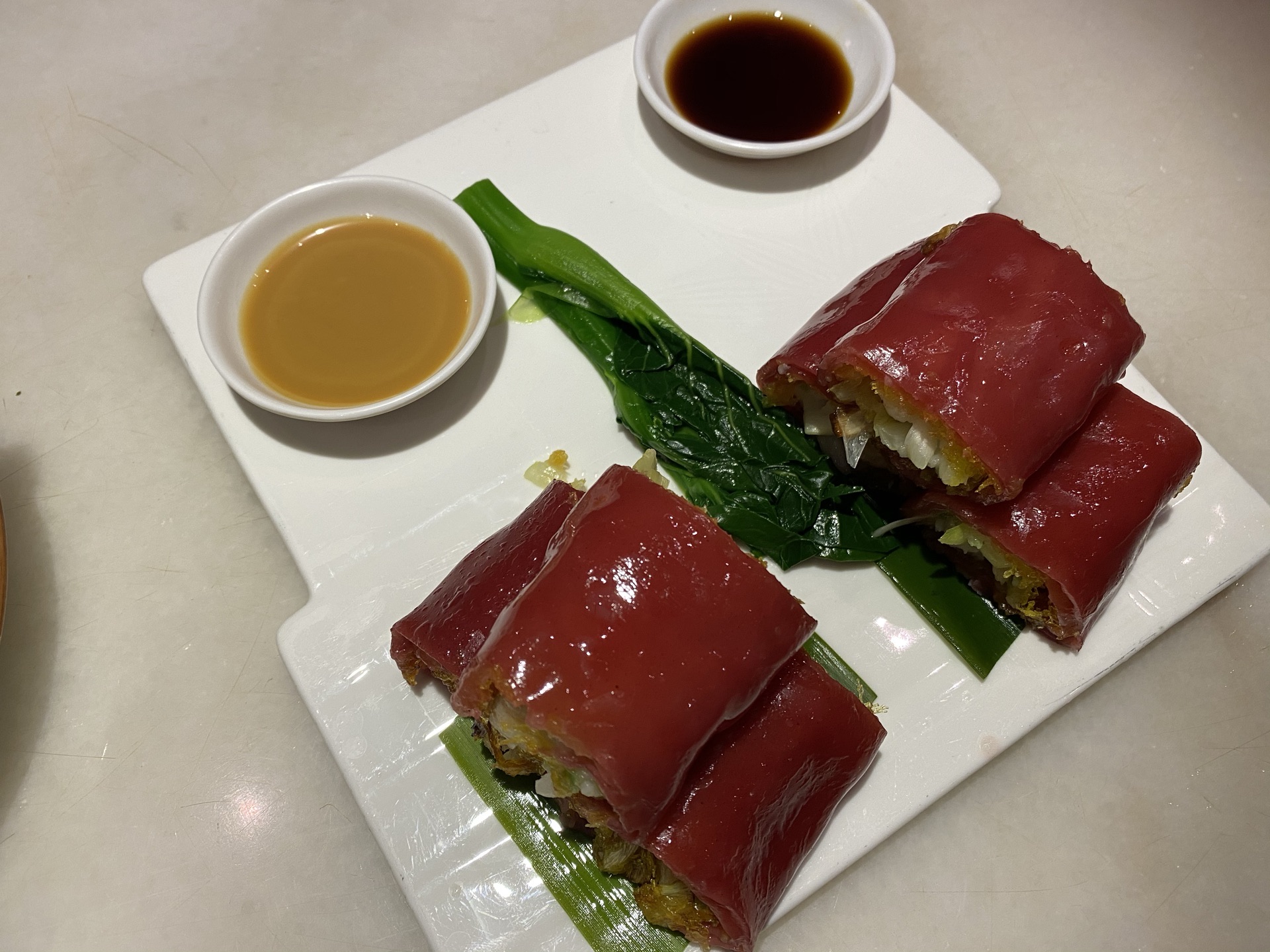 来到了正佳广场五楼广正街里面的这一家禄运茶居分店,周日过来的,最近实在是很少人出门,所有茶居不用等位,桌子随意坐,不少位置可以选择。记得以前也来到这里,一到饭点,早早就已经开始叫号等位了,我到现在都还没能吃上,哈哈,现在最合时。 这里是吃粤式茶点的,古色古香装修的茶楼,坐的也是红木式桌椅。点心全部是即点即蒸、即做,很新鲜,热乎乎的点心特别吸引人。这里的服务不错,服务员们都很热情,上菜挺快的。 {红米肠},份量很大,一份有六大块,红米肠粉皮绵绵糯糯的,中间夹着大大粒的虾仁,虾仁并排两行,加入了韭黄吊味,很香。配了酱油和花生酱,我不知道为什么会配花生酱,有些餐厅配,有些不配,但是我感觉好像蘸了花生酱更地道吧。 {禄运虾饺皇},一笼有三个,比其它餐厅的虾饺有四个少了一个,但是每一粒虾饺的个头都很大,非常饱满。虾饺里面的用料很足,满满的虾仁,很爽口,新鲜,外层的皮不会很厚,有点点粘粘的,不错。 {黑椒牛仔骨},放得有点散的感觉,好像只有三块肉肉吧,不多,牛仔骨还是比较嫩的,酱汁也不会太多,黑椒的味道刚好,不会太浓。 {酱皇豉椒蒸凤爪},不错,凤爪有很多只,蒸得很入味,底下只是垫了几粒花生而已,满满的都是凤爪,赞。