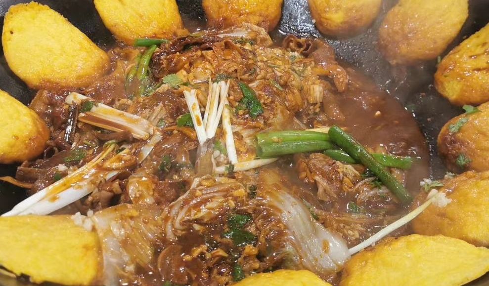 鱼锅饼子特别好吃,配上五花肉和豆腐,宽粉,很对味!这家黄王老六铁锅炖鱼,在青岛还是小有名气的这家黄王老六铁锅炖鱼,在青岛还是小有名气的。镇江北路这家店的店。规模挺大的。环境,也是挺好的。鱼锅饼子特别好吃,配上五花肉和豆腐,宽粉,很对味!