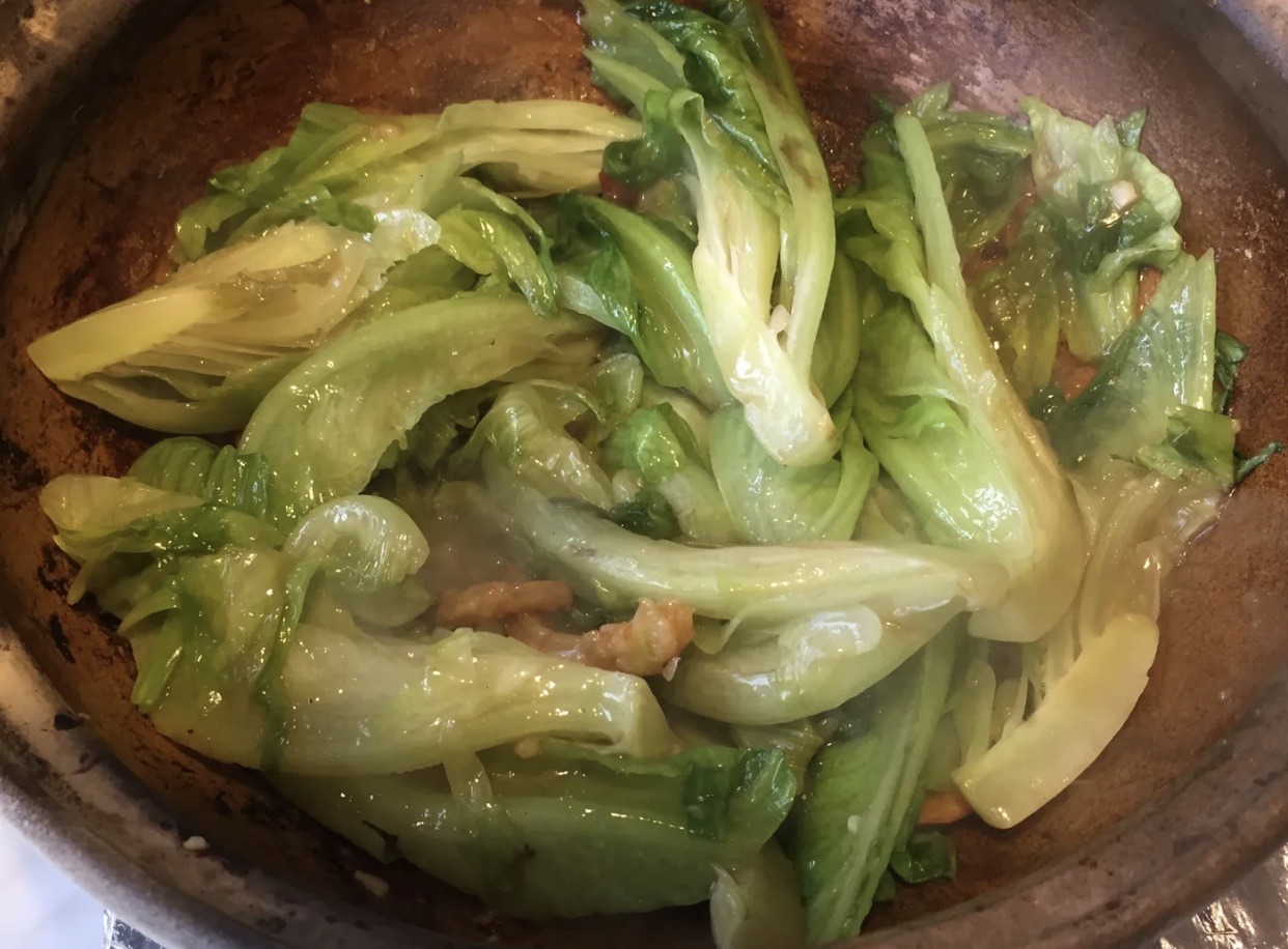 ...上热气、香气就冒出来了,生菜还是原来的青嫩、爽脆,我很喜欢吃有虾酱的东西,所以也特别喜欢这道菜