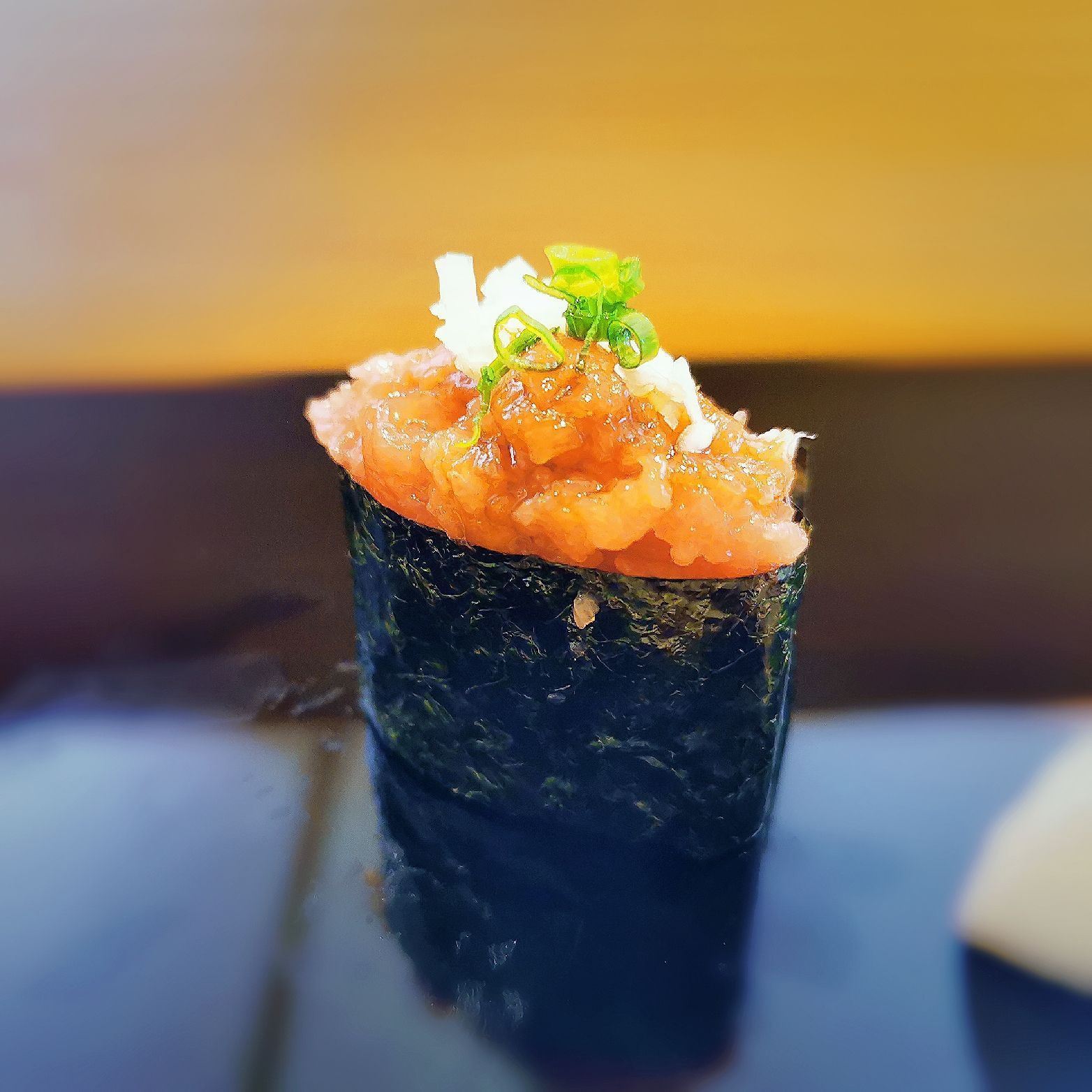 这是我吃过金枪鱼最好吃的日料店了 他们家感觉在日料上面会更加细分一些,主打就是寿司🍣 有很多日料店菜品会更加多一些,也更杂一些,有句话叫做“术业有专攻”,他们的术业就是“寿司”,所以,单就在寿司方面,远胜其他家[心] 【环境】 整家店的空间并不算大,但是装修处处都很精致,整体很安静,如果不习惯这么安静或者直面厨师的,可以选择包间,包间也是典型的榻榻米,很有日式风格 |刺身五點^这家的刺身口感非常棒,肉质细腻软滑,如果不是很能接受吃生的,可以让厨师烤一下,表面浮着一层烤的油脂,也是非常香的,三种刺身都有不同的吃法,厨师会告诉你如何搭配 |鹅肝手握^又解锁了鹅肝的新吃法,之前吃过红、炙烤、酱烤,蒸蛋类的,只能说鹅肝真的太好吃了,不同的做法,口感和味道都完全不一样,这次的手握鹅肝入口还有肉汁,带点鲜甜,喜欢鹅肝的绝对别错过 【服务】 服务感觉太周到了,就好像私人管家一样,只要喝了茶,茶杯马上就会给你满上,就是有点不适应,期间喝了好多茶,让小姐姐添了好多次,有点不好意思 总体来说,整顿餐体验感还是不错的,不过不建议一个人去吃,最好和朋友一起,不然太安静了~