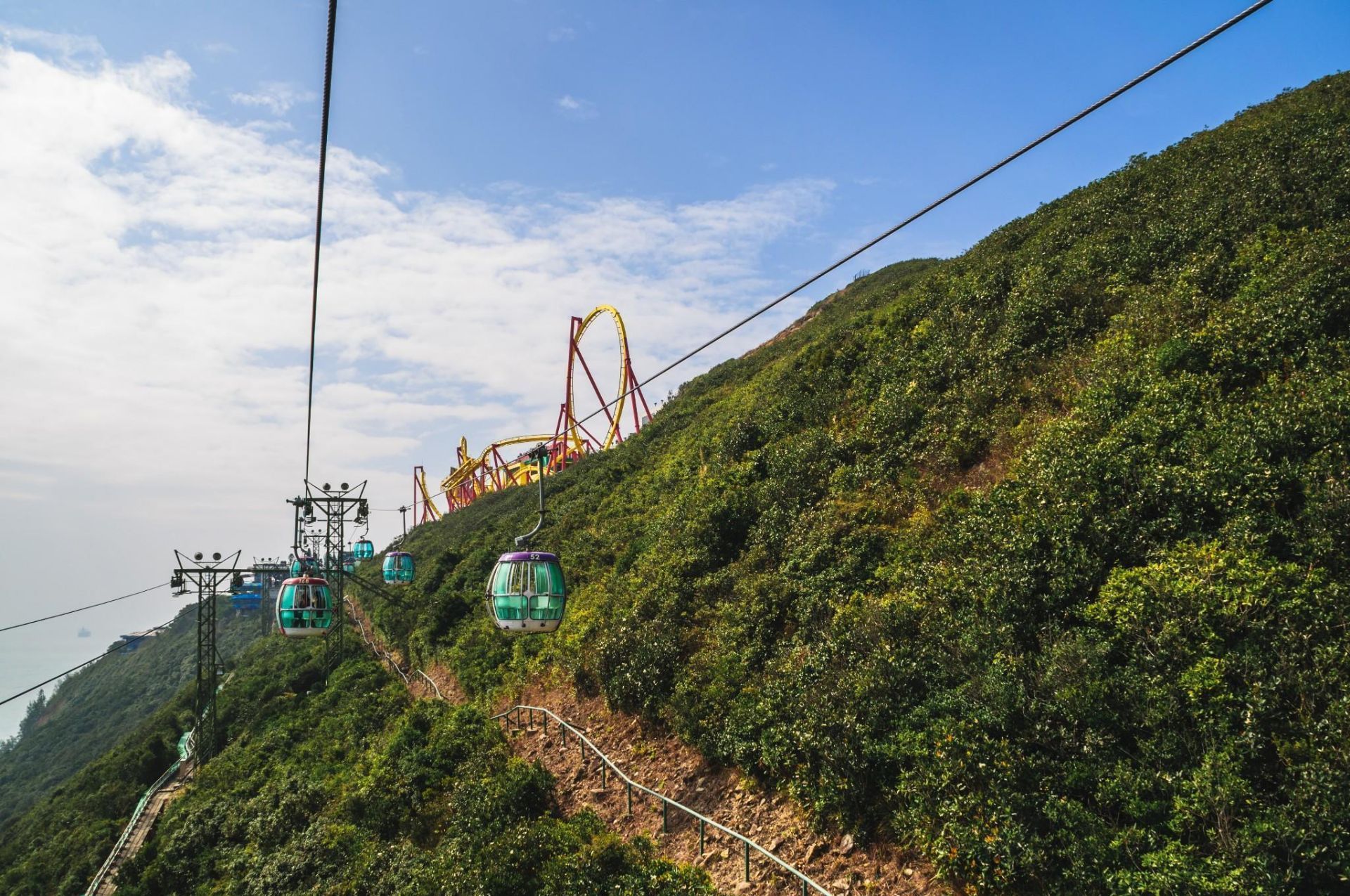 网友2020-04-28香港海洋公园的登山缆车,途中看到的风景还是很漂亮的,就是拍照的时候玻璃反光很厉害香港海洋公园的登山缆车,途中看到的风景还是很漂亮的,就是拍照的时候玻璃反光很厉害。排队的人也非常多,我们排了有半个小时。