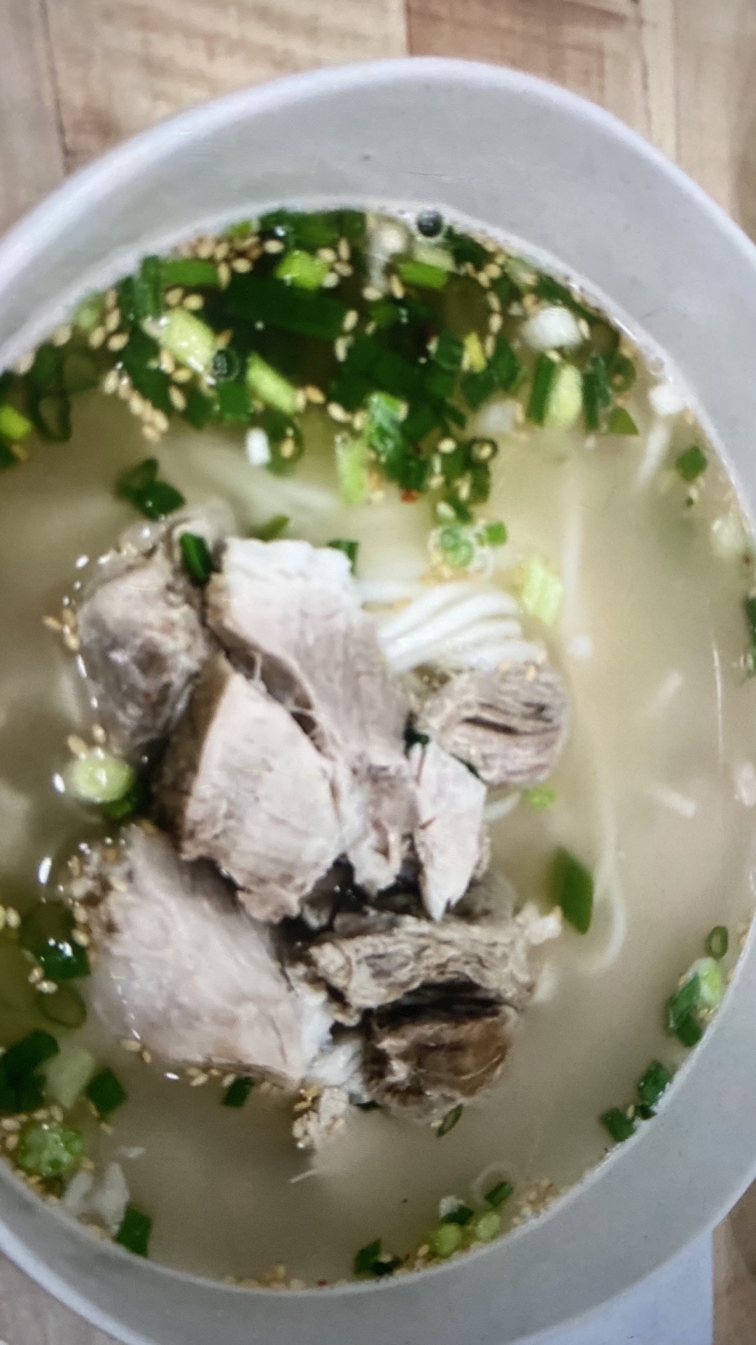 吃个早餐还是很不错,门外的凳子是给等位的顾客坐的,只有一个选择,就是猪肉汤面,就像我们平时吃的清汤面条,猪肉即只有几块,半肥瘦的口感,加上芝麻葱花,味道很香,汤味道很鲜,但是不算惊艳,小菜不多,几片泡菜,辣椒和大酱,价格还真不算便宜,分量足,不用担心吃不饱。