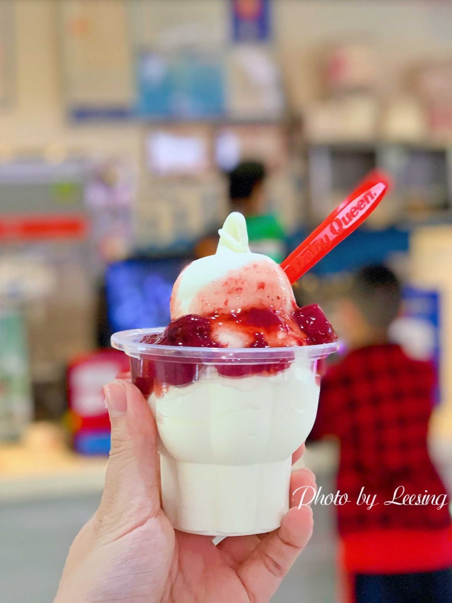 DQ是Dairy Queen的首字母缩写,意为“冰雪皇后”,源自美国,不过在中国很多大型商场都可以看到它家门店。SM城市广场店位于SM城市广场一层中庭服务台旁,靠墙式的门店,有几个小型座椅可以就坐。DQ最为热门的就是它家的冰淇淋了,点的草莓圣代,小小一杯16元,略有些小贵,不过冰淇淋特别细腻绵滑入口即化,搭配的草莓酱可以吃到超大块的草莓果肉,如果奶味再重点、甜度再淡点就完美了。