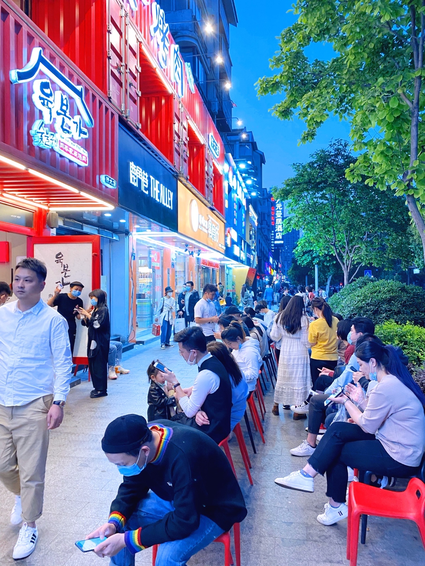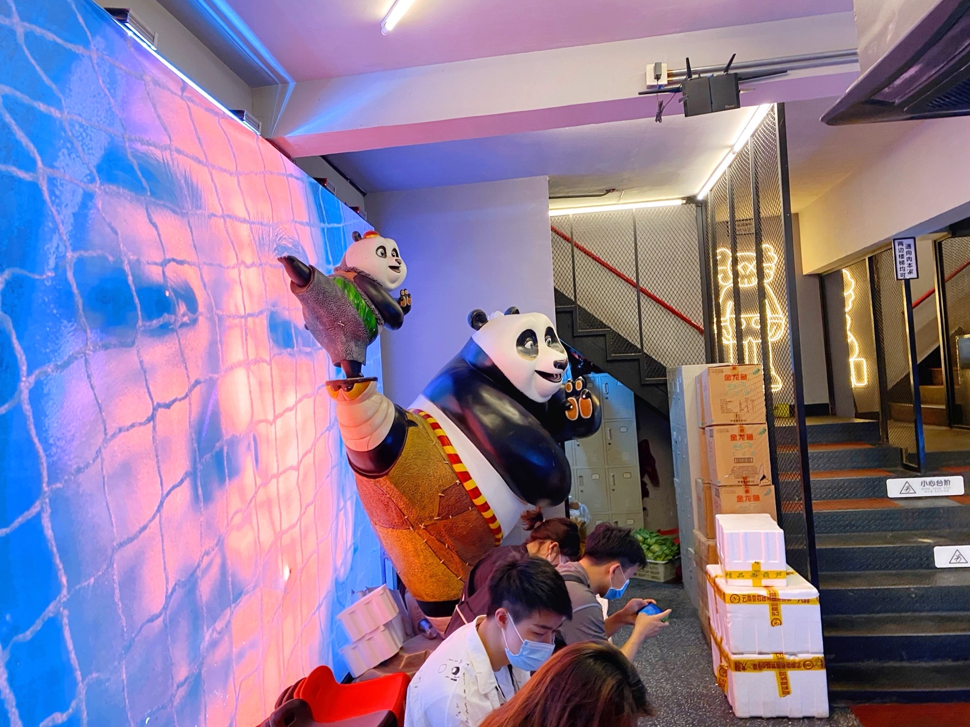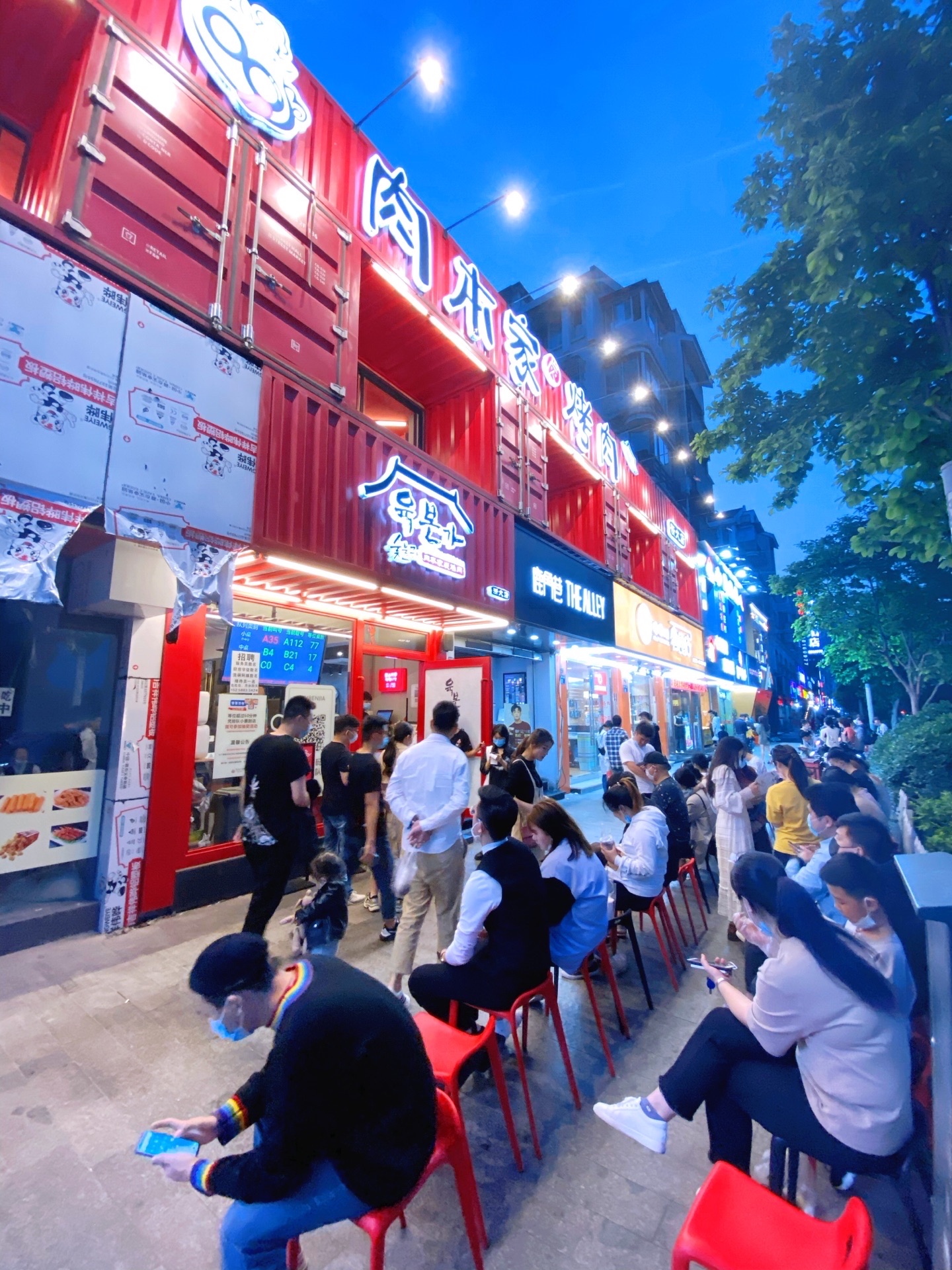 听说过浙大紫金港校区附近的肉本家很火🔥……一下班就冲过去,却发现已是人满为患……店外的人行道上坐了许多等位的人,令人心悸。店铺的装修很有特色,一个像集装箱般的二层小楼,用红色装饰了外墙,很是显眼!一楼有一个功夫熊猫的玩偶,很卡瓦依。二楼才是就餐的餐厅,有三十多张桌子,周围一圈包间分别用黄色和蓝色涂装。这是专门吃韩式烤肉自助的,店主人花了百万租了此房,也是有十分迫力滴!