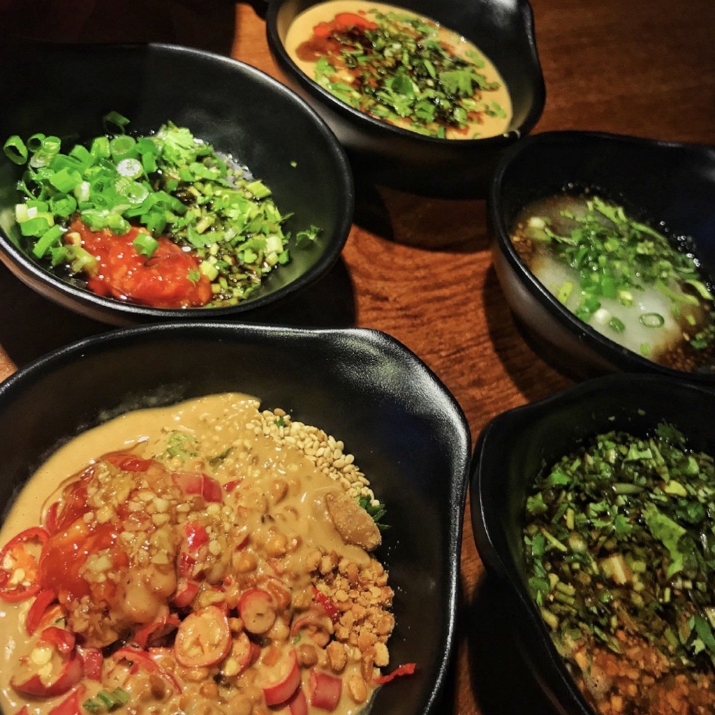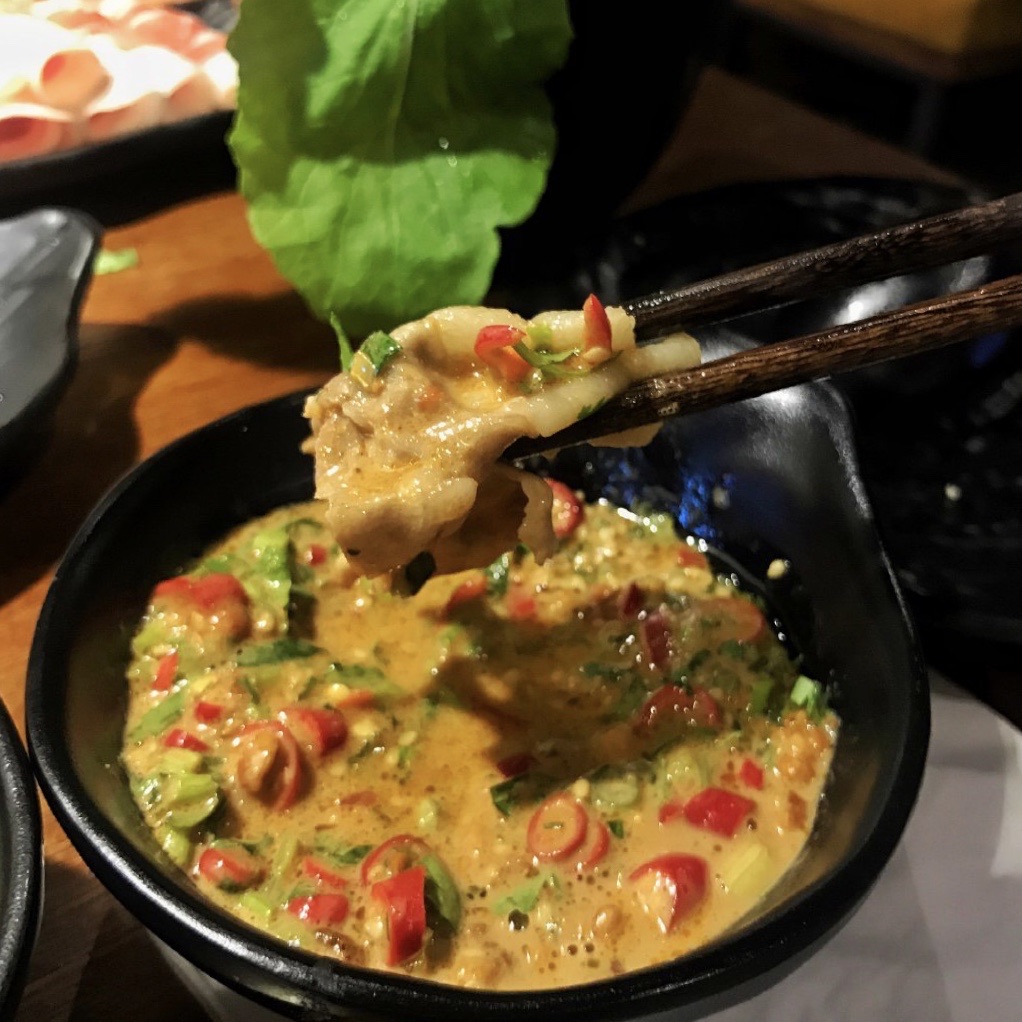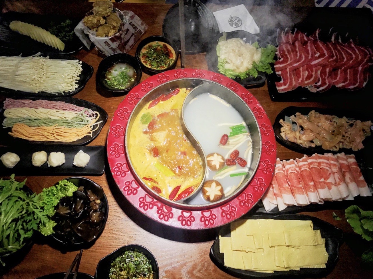 熊喵来了萌火锅 (台湾风味) 台湾麻辣锅辣度适中 没有很呛 自带鸭血豆腐 很入味 白汤是日式柴鱼锅 尝了一下比较淡 但聊都偏咸 所以涮品蘸蘸料 还是没毛病的 三个人调了五碗料 因为看店里有推荐的组合碟就试了一下 秘制辣酱有点咸 但是!日式酱汁+白萝卜泥 还是很好吃的 一开始闻上去觉得臭臭的萝卜味 但是吃起来很好吃的 大家可以试试 具体几勺怎么组合 调料区有牌子提示的 有几个招牌菜品可以推荐一下: 一米羊肉(真的是羊肉卷堆在一米长的板上)(但是有半份 如果大家觉得一米的吃不掉可以点半米哈) 环肥燕瘦(是猪五花 细看肉卷真的外圈肥内圈肉 名字起的很到位了) 鲜嫩滑羊肉(里面有颗蛋 把蛋打散裹在肉外 如果不会弄的话可以喊服务员帮忙啦) 花团锦簇(蔬菜拼盘 还包含菌菇 很实惠) 四色火锅面(我实名推荐!而且我觉得要清汤下 不要配料 因为绿色的菠菜面也太好吃了吧 吃饱了也要再塞两根进胃的那种) 水果罐头和蚕豆是小零食随便拿 但是水果罐头总是补充不及时 如果遇到 都是缘分了 怪味蚕豆的酥脆我很喜欢 就是略油腻 菜品摆盘都还蛮精致 而且上菜速度神速 非常开心了 就是哗啦啦一股脑就堆满了桌子 幸福感爆棚 而且我个人觉得 菜品还是比较实惠的 尤其蔬菜都很便宜的感觉 点菜看到有羊排 还是蛮惊喜的 但是实在自己掌握不好火候不敢点 饮料很多都是礼炮桶装 甜点也是颜值在线