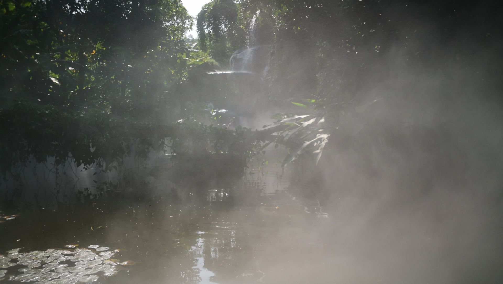 是这里面很值得去逛的一个地方啊,定期定时都会有这个喷淋啊,增加一下空气的湿度,防止太热,给这些...是这里面很值得去逛的一个地方啊,定期定时都会有这个喷淋啊,增加一下空气的湿度,防止太热,给这些植物都热死了干死了,呃,亚热带植物在热带的成功引种大概也就是这样吧。