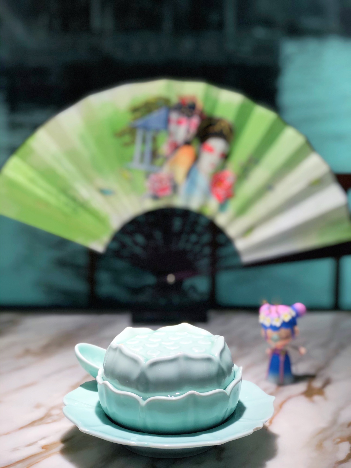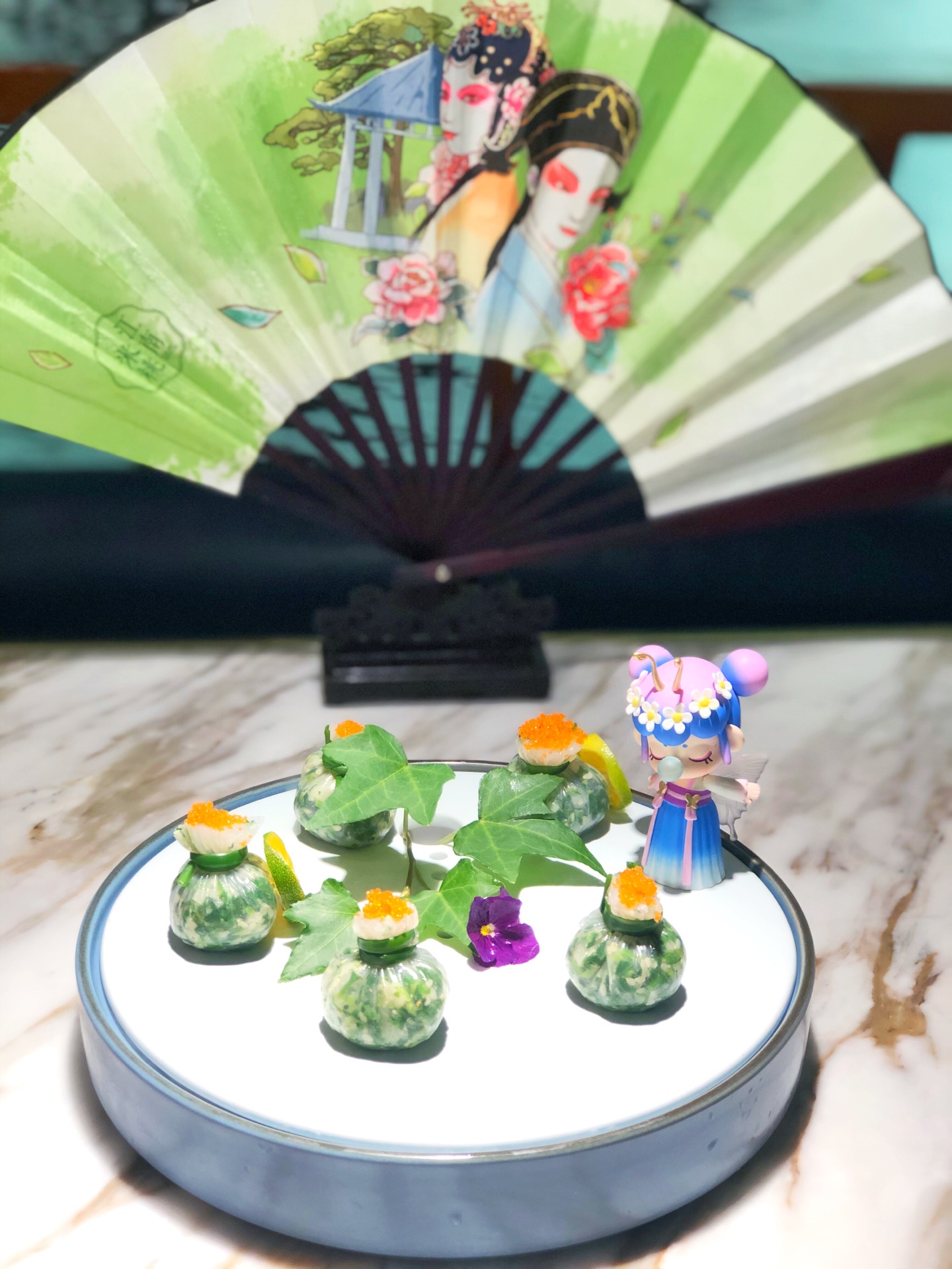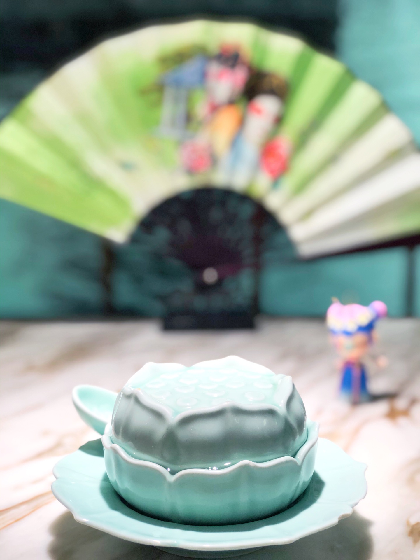 中午店里的生意非常好,即使是工作日,几乎满座,店员忙进忙出的,但丝毫不会怠慢客人,真诚待人,...每张桌上都有折扇,拍照真的好漂亮,特地带了个Nanci的盲盒,真的太搭调啦! 中午店里的生意非常好,即使是工作日,几乎满座,店员忙进忙出的,但丝毫不会怠慢客人,真诚待人,令人感动。