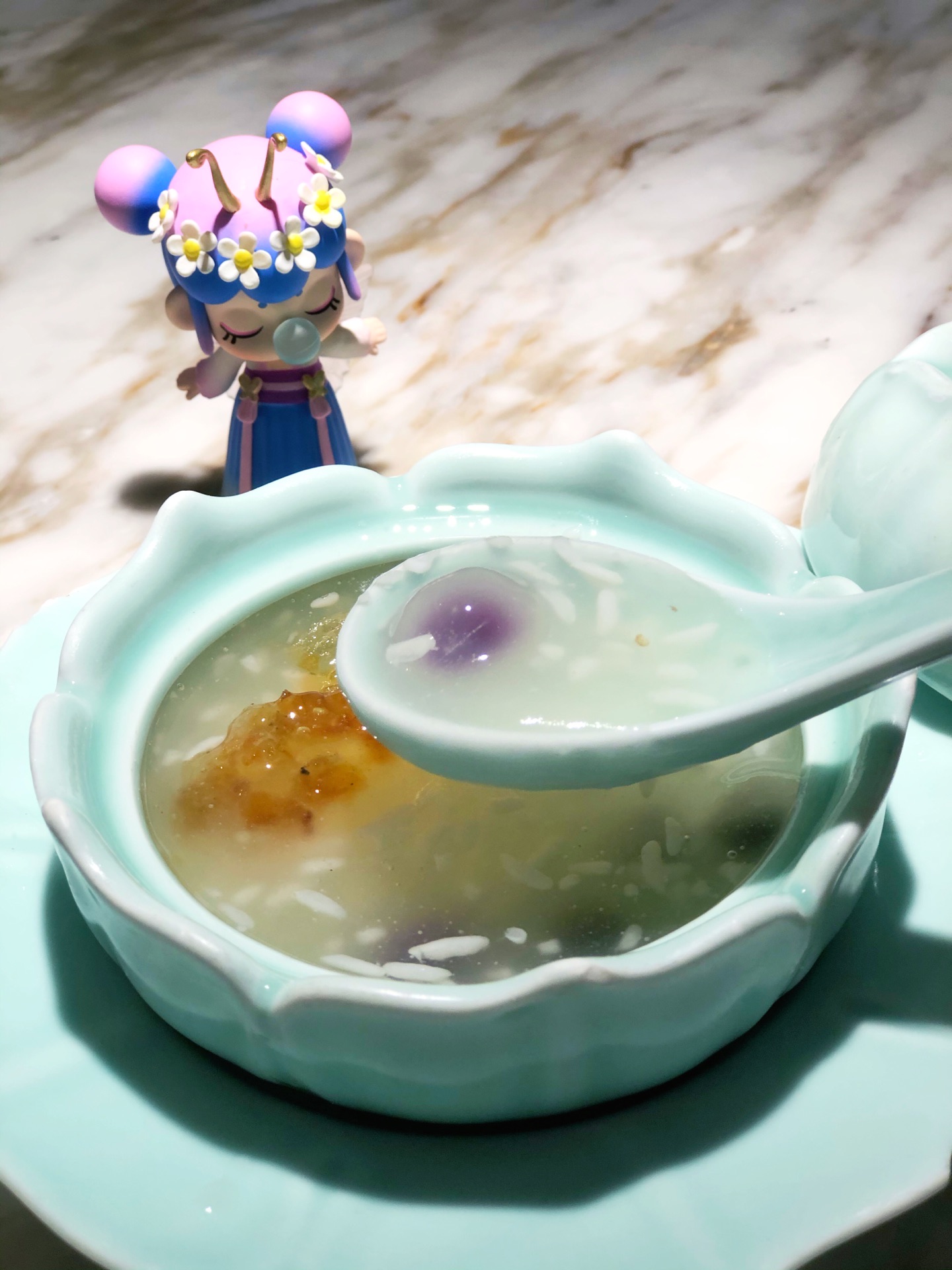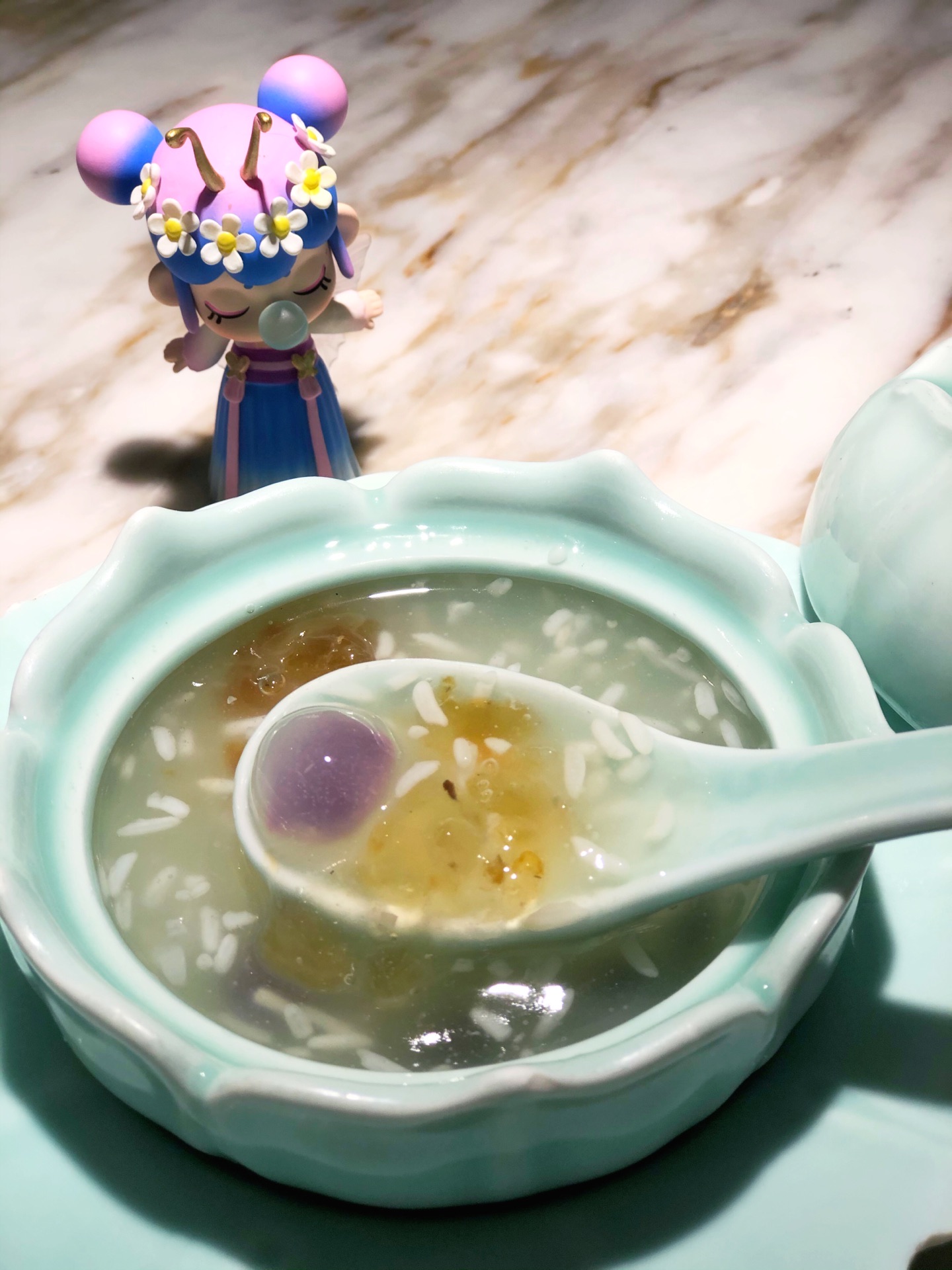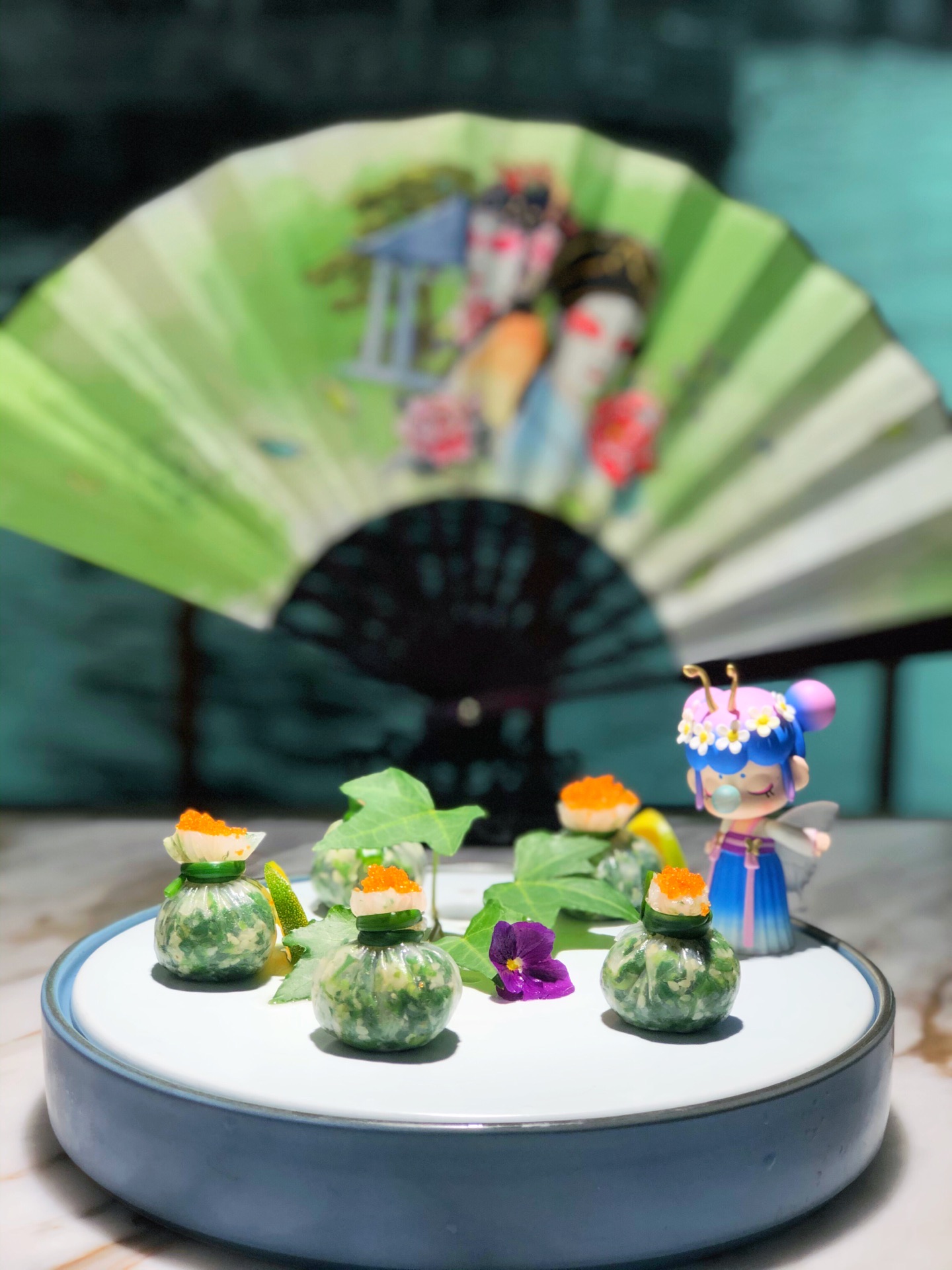 中午店里的生意非常好,即使是工作日,几乎满座,店员忙进忙出的,但丝毫不会怠慢客人,真诚待人,...每张桌上都有折扇,拍照真的好漂亮,特地带了个Nanci的盲盒,真的太搭调啦! 中午店里的生意非常好,即使是工作日,几乎满座,店员忙进忙出的,但丝毫不会怠慢客人,真诚待人,令人感动。