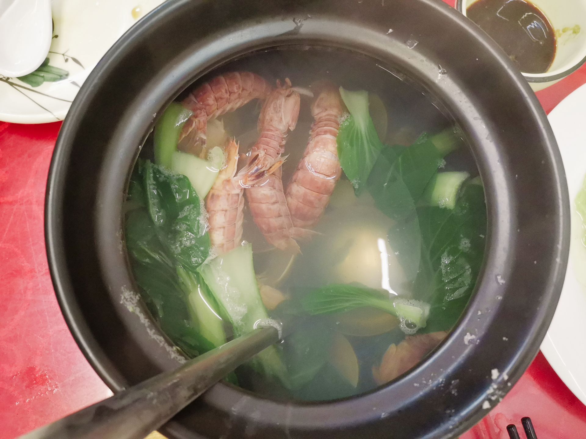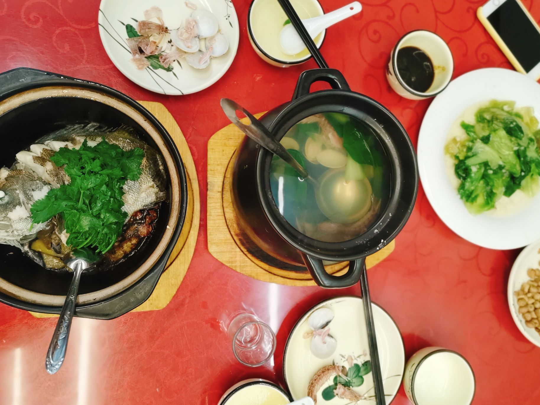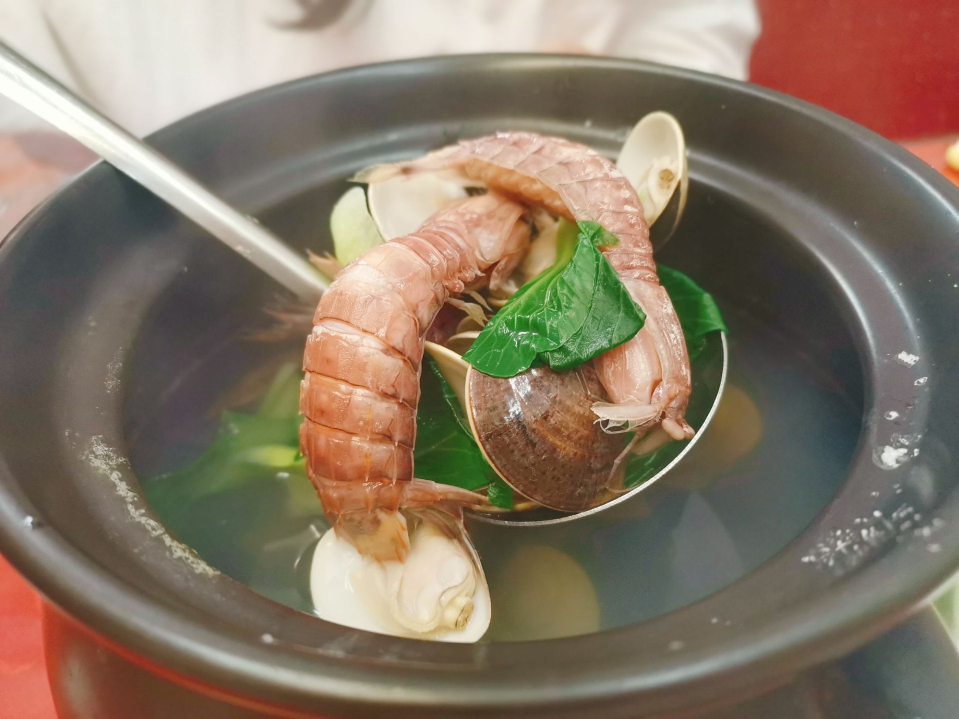 ∠( ᐛ 」∠)_ 又见鹭港渔家,还是|香锅鱼^,还是熟悉的味道,它家的主推菜品,借鉴了姜母鸭的做法,但生姜的味道并不会喧宾夺主,去除了生鲜的腥味,保留了鱼肉的鲜甜,口感会较为清淡,建议蘸下锅底汤汁。 |皮皮虾青菜汤^,皮皮虾与文蛤的组合,鲜上加鲜,新鲜的皮皮虾新鲜的文蛤,带来鲜甜的汤头,很大一锅,水太多了,味道有点冲淡。 |炒生菜^,家常蒜蓉味,蔬菜清脆,但油比较多。 二楼的服务会比较薄弱,很多时候,需要食客下楼找服务员,餐厅的环境也有些年头。