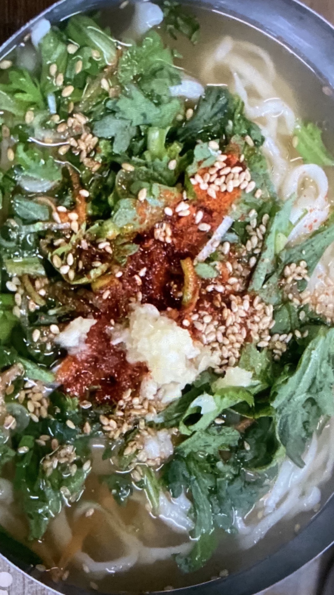 周边的环境一般,店外就是左面的工具,环境比较简陋,餐单选择不多,有寿司和三种面食类,老板也非常推荐,我喜欢吃带汤的,面条很有弹性,口感清凉清凉的,里面还放有青瓜,肉末,青菜,随后还撒上芝麻,味道很香,价格也不贵,逛类了没什么食欲,这个正好可以满足。
