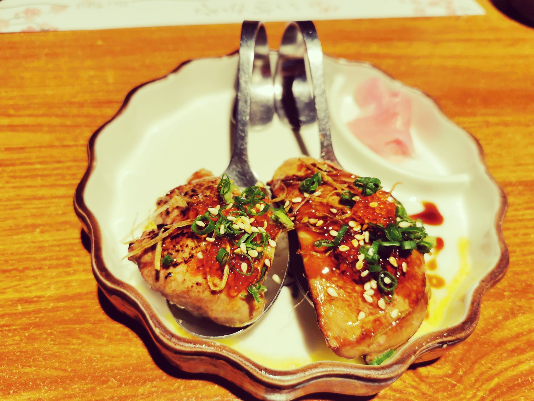 |火炙鹅肝手握^鹅肝肥美不腻,趁着热吃,软糯鲜香,口感甚微惊艳!餐后免费打包。餐盘也都非常精致呢