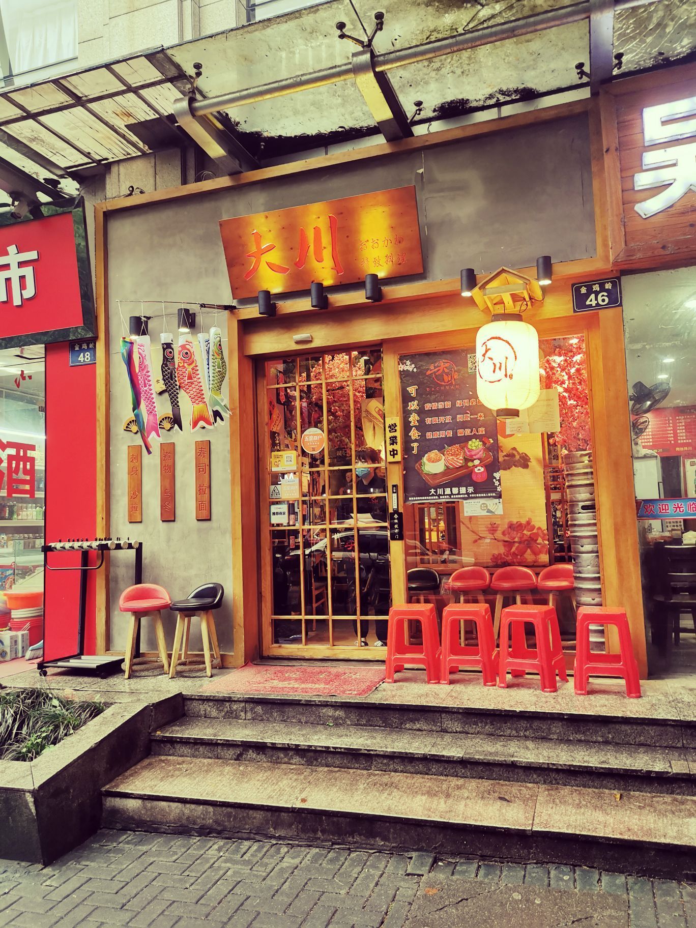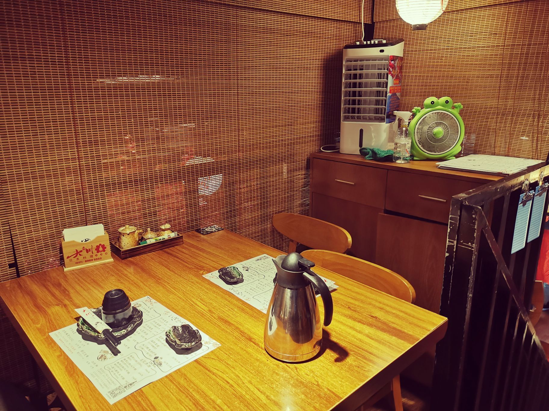 店名:大川日料解放路店 地址:金鸡岭46号 交通:地铁一号线城站 营业时间:11:00-14:00 16:30-24:00 人均消费:116元 [薄荷]环境: 大川日料坐落金鸡岭,一条浙二医院与市三医院之间的老街,邻居是赫赫有名的吴山拌川。身处于闹市,却隐隐于市。门头极其低调,不显山,不露水,似乎不小心就会错过。 典型的日式居酒屋布局,延续了老房架构,两层楼的loft设计。推开门,一株株艳红色樱花淋漓绽放,尽显婀娜多姿。日式白灯笼悬挂,守护着居酒屋的故事。墙上贴满了日式的海报,把居酒屋浓郁的氛围烘托到极致。 纵容空间紧凑,座位密集,简易木栅栏隔开,便是一片独立的就餐天地。方寸之间,毫无压抑,浪漫雅致、温馨治愈、印象深刻。日式居酒屋的设计,不得不佩服地五体投地。 我们拾阶而上,在二楼就坐。阁楼的面积,只够摆下两张四人桌。顾客多了,不能开空调,会有些闷。还是建议小伙伴坐一楼吧。 [服务铃]服务: 预订时彬彬有礼,入店主动招呼,安排入座。就餐过程中,提醒要趁热吃。餐后免费打包。餐盘也都非常精致呢。 [玫瑰]推荐菜品 |精致刺身三拼^三文鱼、北极贝、甜虾三拼,肉质肥美,新鲜嫰滑,入口即化。 |烤银鳕鱼^银鳕鱼外焦里嫩,入口延绵。淋上酸甜的柠檬汁,酸甜中鲜美细腻。 |厚切牛舌^牛舌香味四溢,柔韧有嚼劲。蘸着特制酱料,牛舌的鲜嫩,愉悦地在舌尖开了花。 |三文鱼牛油果沙拉^五彩缤纷,清新爽口,营养开胃。 |火炙鹅肝手握^鹅肝肥美不腻,趁着热吃,软糯鲜香,口感甚微惊艳! |鳗鱼先生的饭^鳗鱼肉质滑嫩,咸甜的酱料非常入味。搭配蛋丝,拌饭更是香甜。 |牛肉寿喜锅^热气腾腾的牛肉寿喜锅,牛肉卷、豆腐、金针菇等,各种作物一起沸腾着热情。牛肉卷熟了,在蛋液里浸润,肥瘦相间,入口即化。 |可尔必思^冰爽酸甜、沁人心脾。 |日式甜品大福^饭后甜点赠送。外表覆盖着清甜椰丝、内馅软糯可口。 大川日料,饕餮今宵, 美食当下,忘却烦恼。