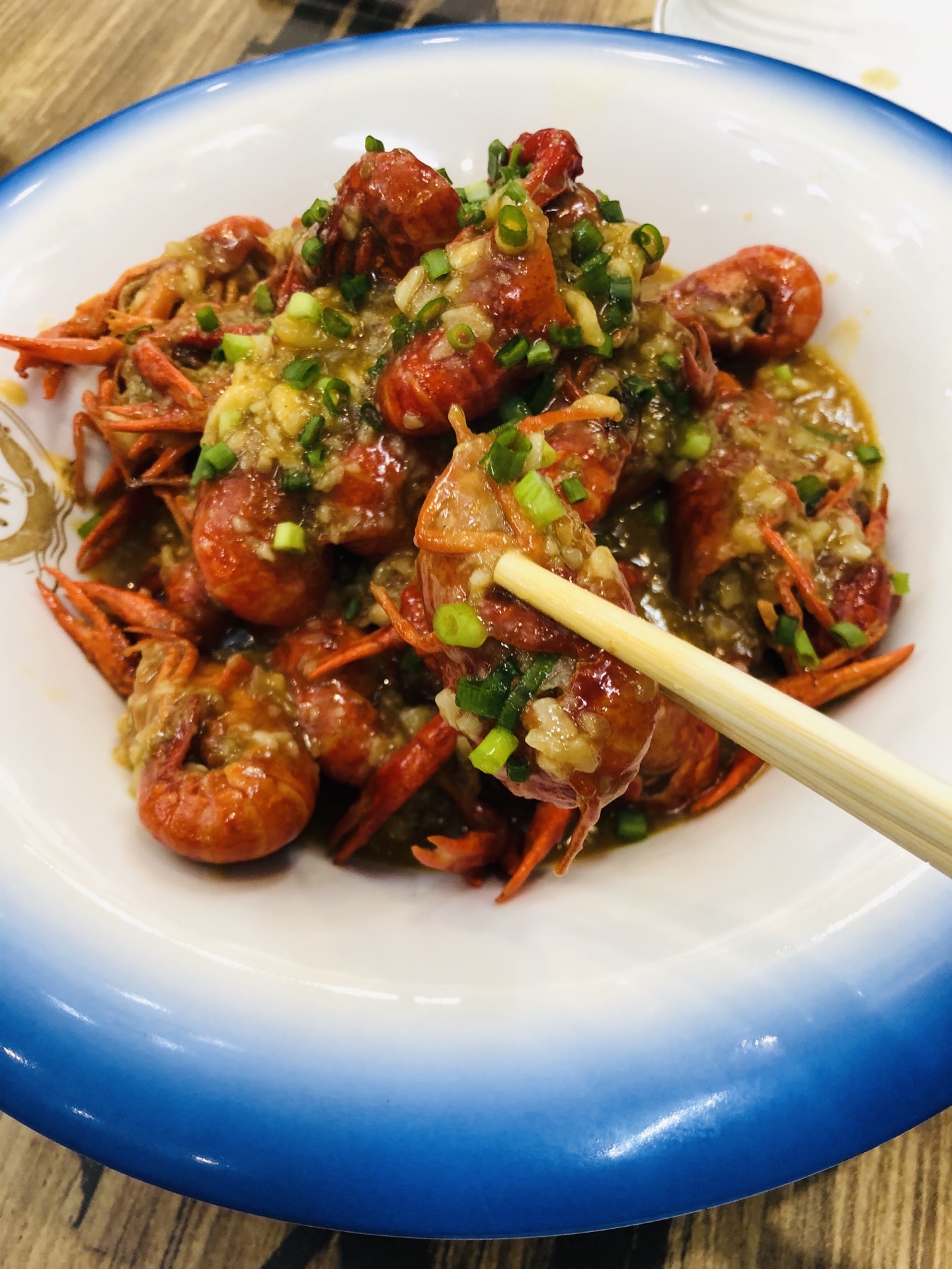 吃小龙虾季节到了。平时都自己家里烧小龙虾,但是处理起来很麻烦,费时费力的。还是外面饭店吃方便。这家店也是老店新开。老板娘很客气,人好看又好瘦。“蒜香小龙虾”色香味俱全,浓浓的蒜味浓郁的汁水,吃到底下居然还有粉丝,粉丝实在太好吃了。蒜泥黄瓜也很入味。