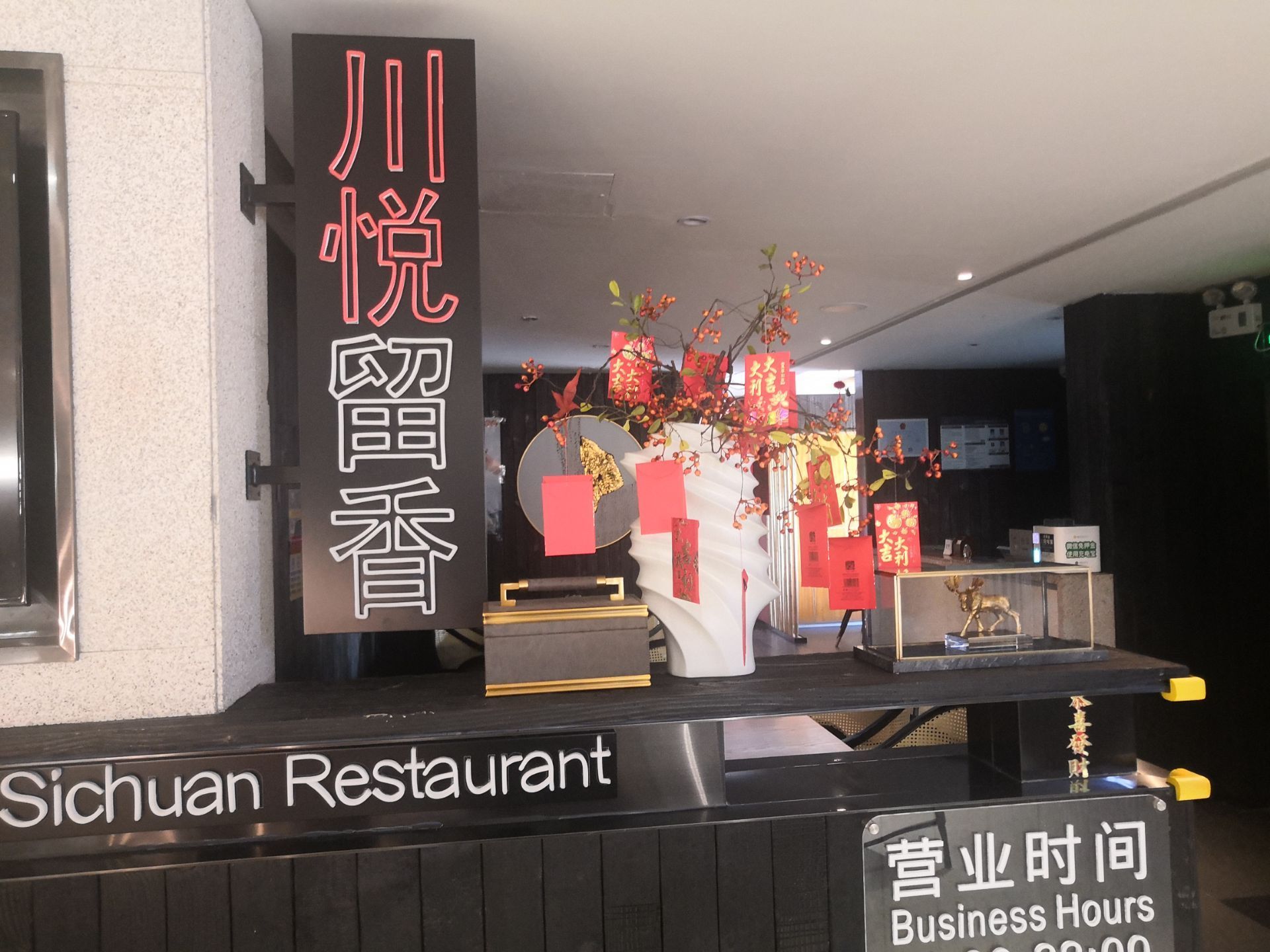 今天刚到的亚龙湾,在海边玩了一会,饭点到了就想找个川菜馆,最后确定在了“川悦留香”店如其名,川味正宗,最主要是家里小孩吵着吃海鲜,这边也能加工海鲜,在一楼的门口就有一个种类全的海鲜市场,本来听说景区价格都很坑,询问后发现其实和市区没什么差别,海鲜都是鲜活的很棒!个人推荐(海鲜毛血旺)(成都钵钵鸡)(金汤肥牛)很符合我的胃口值得一试!