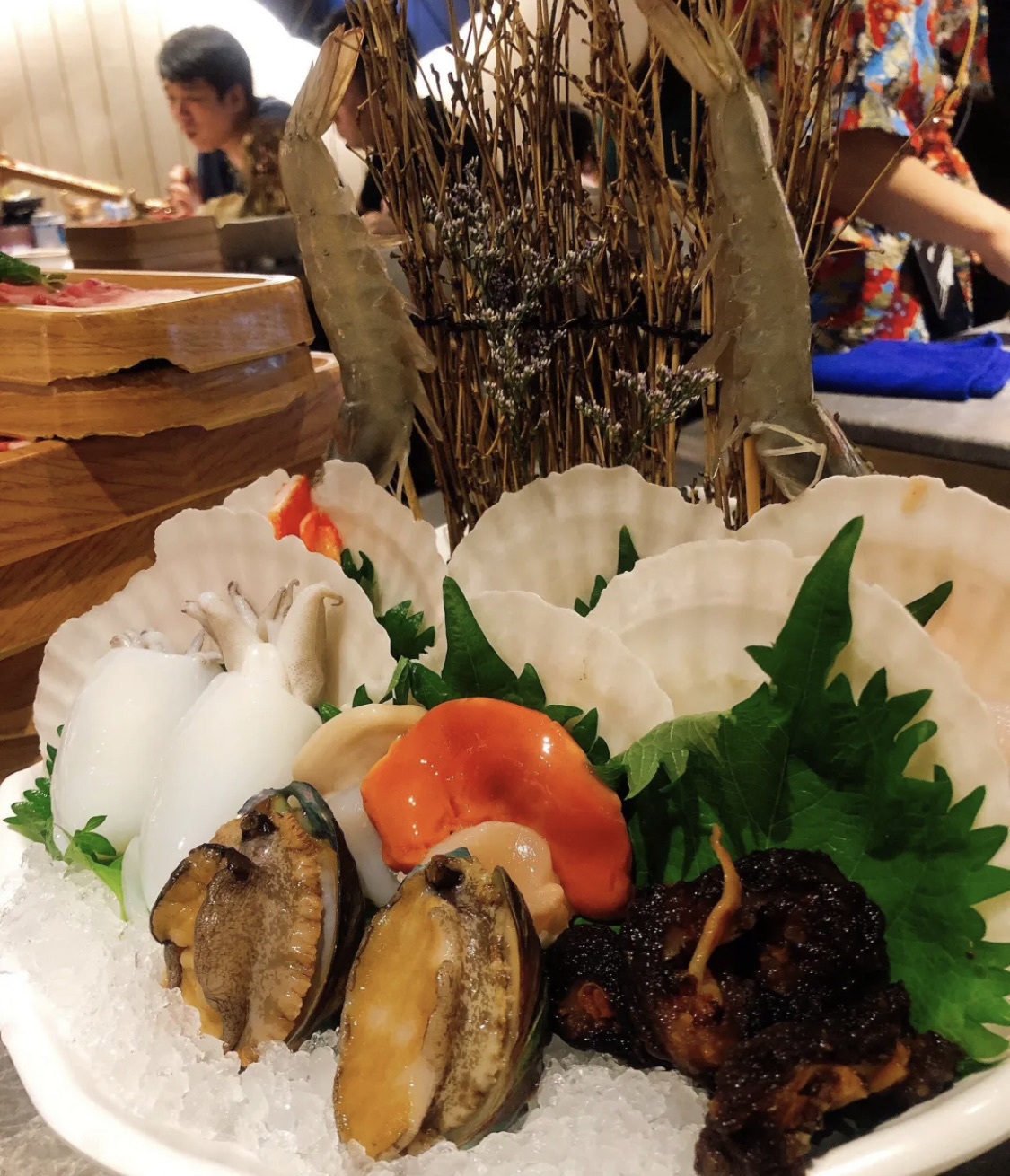 一緒に和牛寿喜烧(合生汇店),澳洲和牛,裹着蛋液吃,口感饱满微甜,吃起来很嫩;海鲜拼盘刺身拼盘都不错,新鲜好吃;抹茶冰淇淋不错。