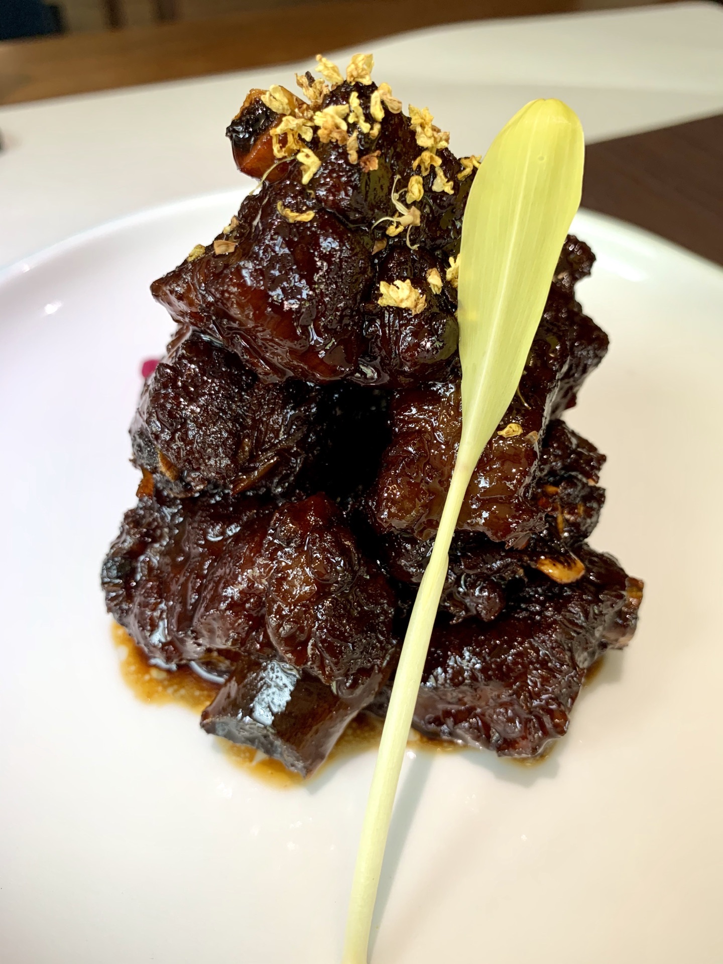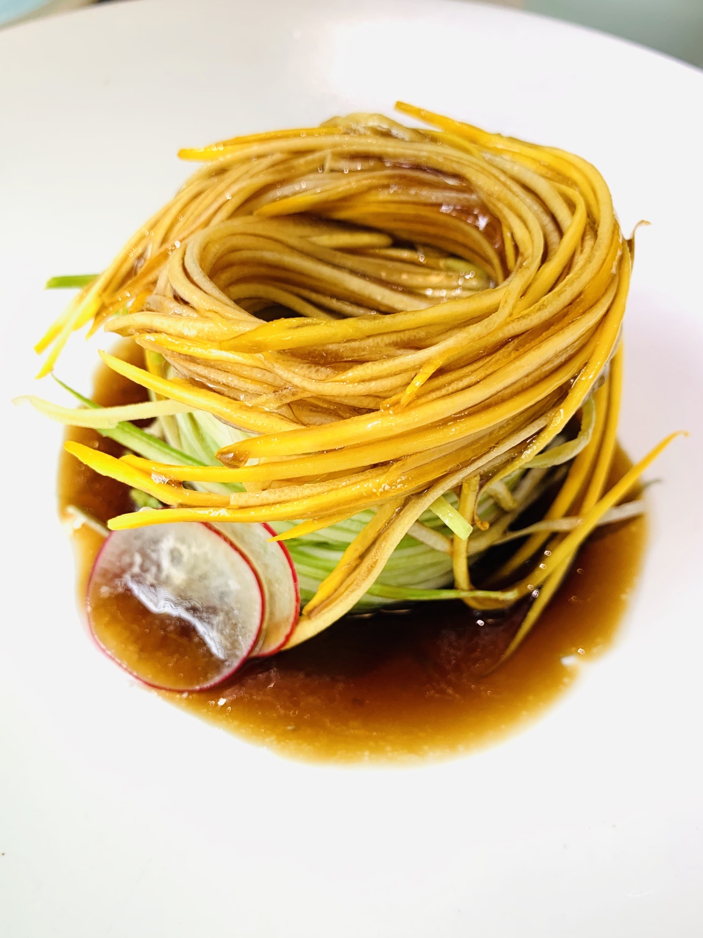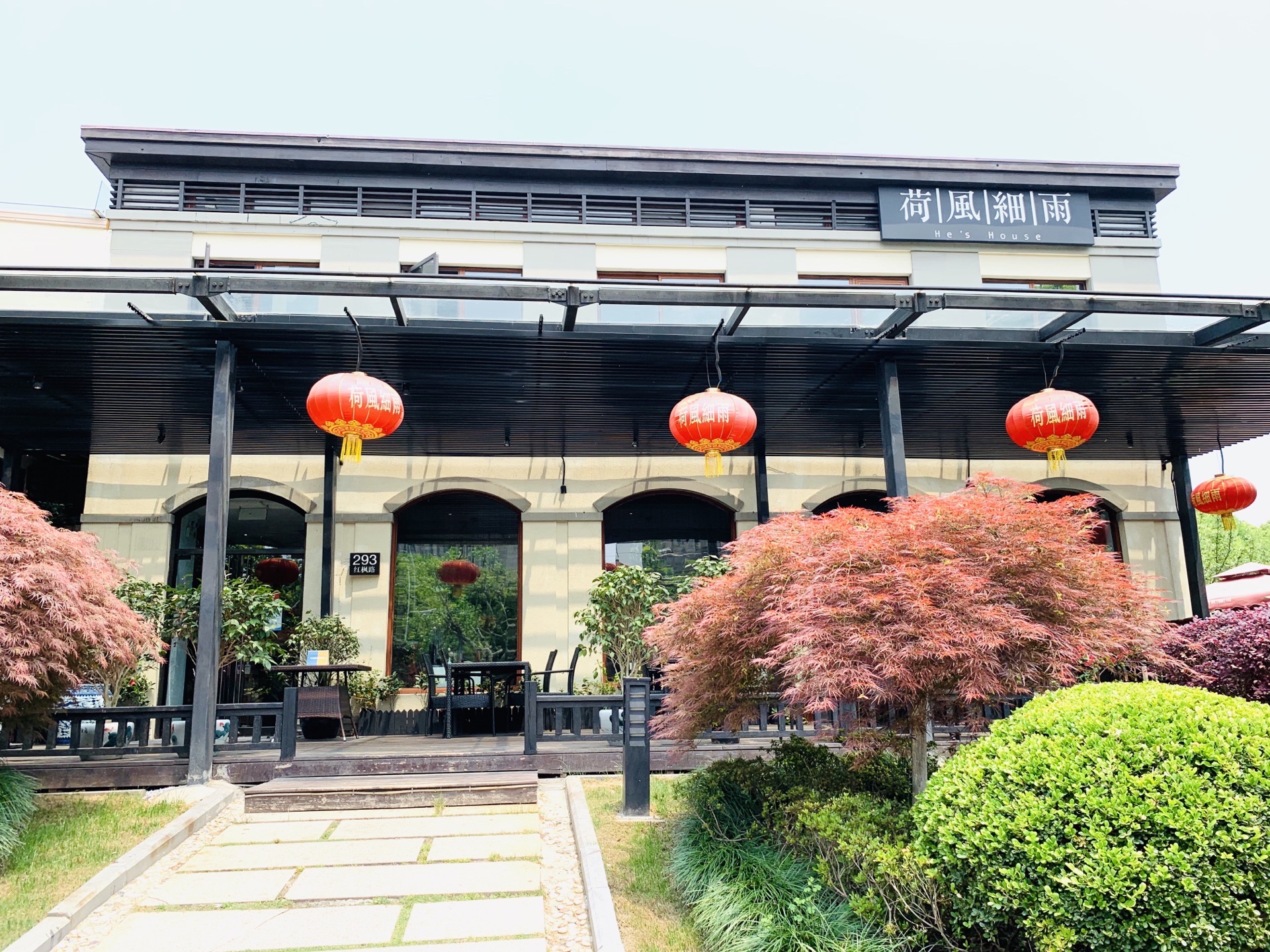 好友邀我一起享用美食,来到的是位于金桥碧云红枫路上的的荷风细雨。离地铁9号线蓝天路站2号口稍有点远,大概要步行二十分钟!自驾的话可以免费停车。 [薄荷]环境: 第一次来,环境还不错。提前预留了位子,服务员一进门就招呼了,整体看着比较精心雅致!一楼是大堂,二楼设有包房,外边露天庭院也有位子,聚餐宴请都可以! 「油醋水云丝」算是一道特色招牌凉菜,由南瓜丝和西葫芦丝组成,摆盘很有特色,酱汁是后来淋上去的,吃在嘴里非常清爽可口! 「梅酱排骨」烧的很入味,虽然量不是很多,但每块吃在嘴里都甜滋滋的,很适合我的口味! 「麻辣水煮八仙锅」超大一盆。料特别足,红彤彤的看着超有食欲,稍微有点辣,有鲍鱼、虾仁,鳝筒、牛百叶、午餐肉等,喜欢吃辣的人那绝对是大快朵颐。 「海皇干捞粉丝煲」量也不少,还有大虾仁和蛋皮丝等,一人吃了好多! 「松茸汁烩豆腐」松茸少了点就两片,豆腐煲的还挺入味,汤汁也很鲜美! [服务铃]服务: 一开时上菜有点慢,三刻钟就上了三个菜,后来催了下,总算都来了,服务员倒茶换骨盘还是挺勤的。 说是双人餐,不过量还是蛮足的,三个人吃感觉也绰绰有余!