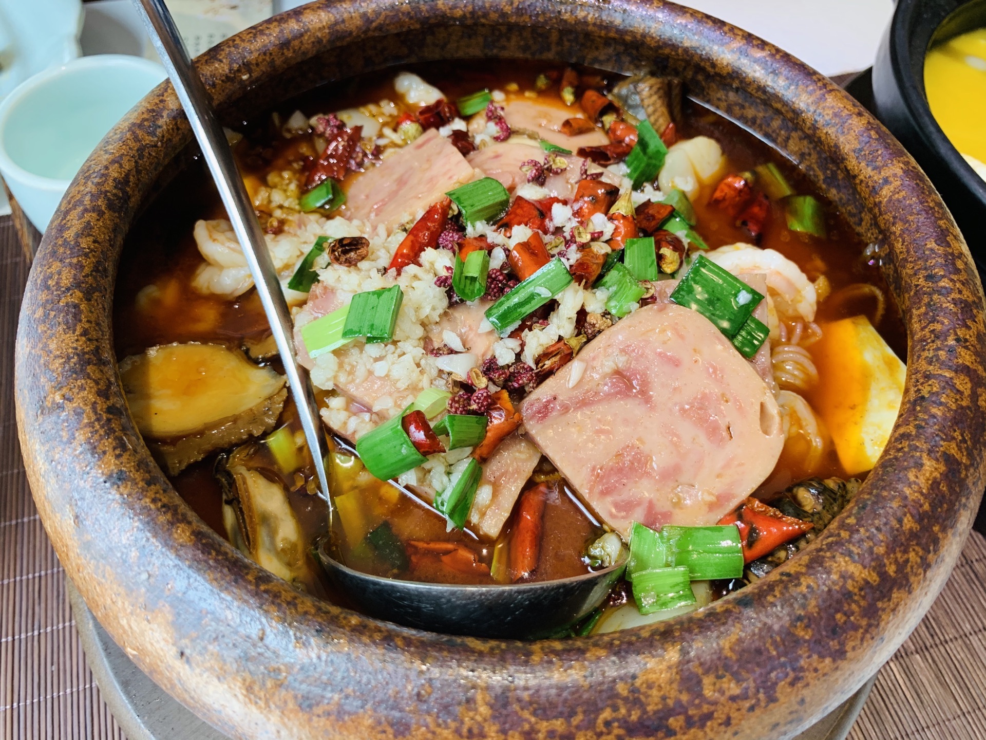 红彤彤的看着超有食欲,稍微有点辣,有鲍鱼、虾仁,鳝筒、牛百叶、午餐肉等,喜欢吃辣的人那绝对是大快朵颐
