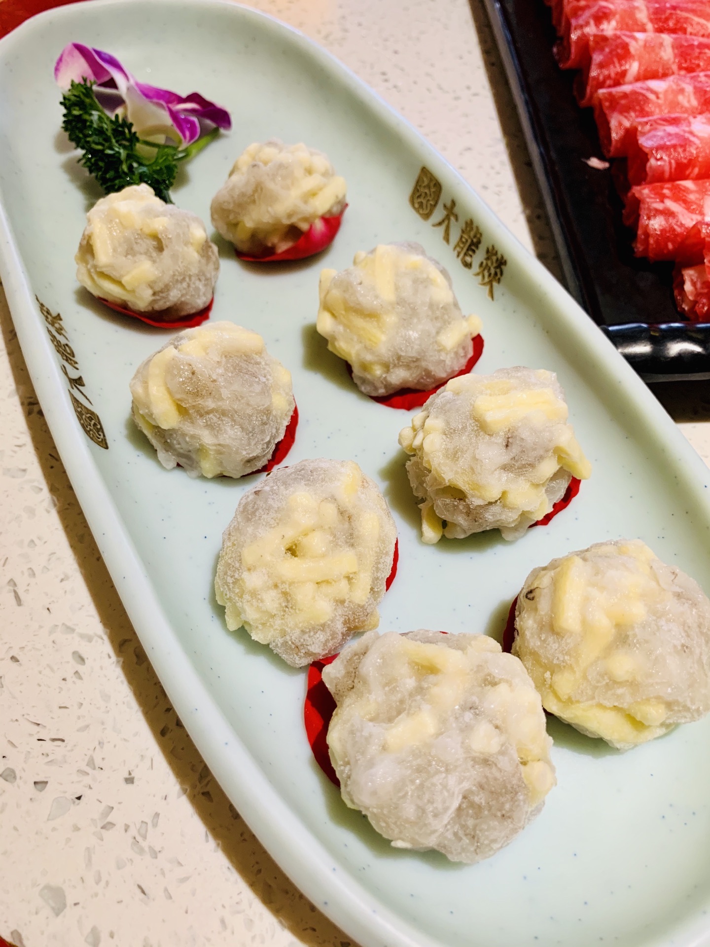 「新西兰芝士虾滑」虾滑配芝士,口感很特别,拉丝效果明显,芝士味浓郁,虾肉吃着也蛮Q弹!特别疫情期