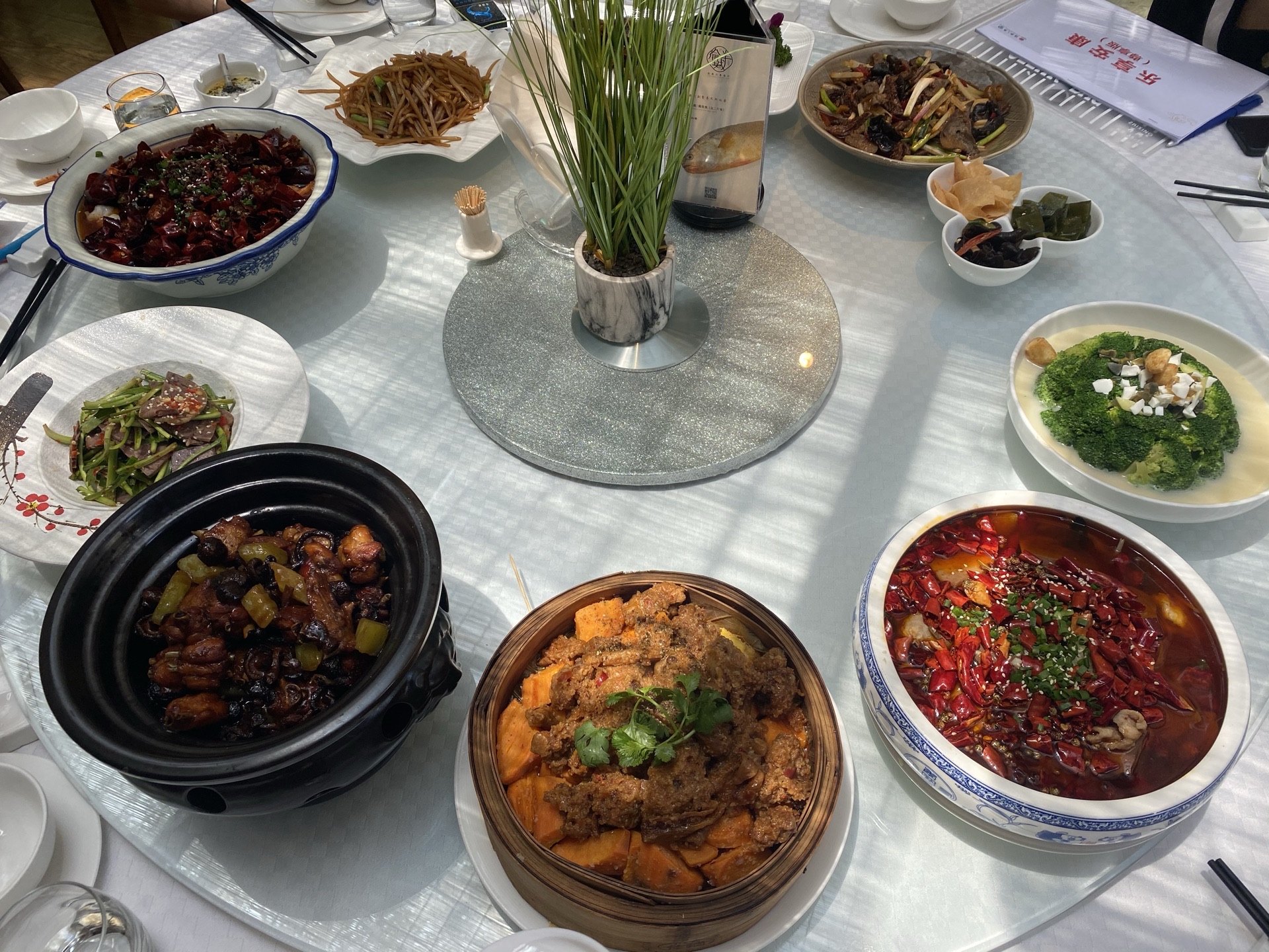 菜品不错,推荐几道: 1、水煮虾仁🍤 2、毛血旺 3、凉拌牛肉 4、粉蒸排骨肥肠