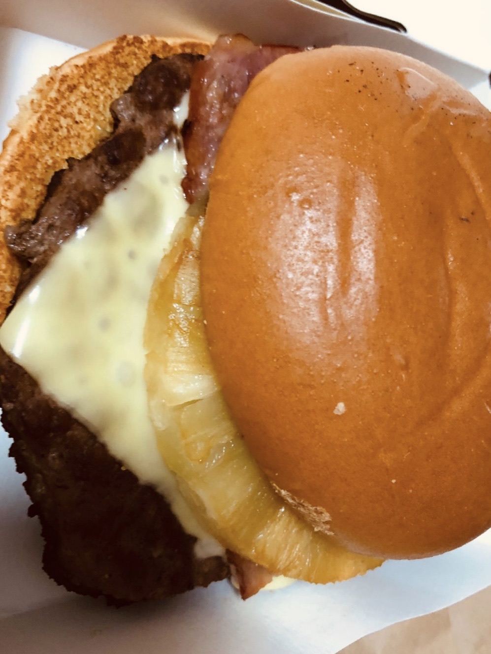 今天试了一下麦当劳的两款汉堡,一个是金芝玉叶另一个是金菠闪闪. 我其实是被这金光闪闪盒子种草的,这盒子的好特别好蛮好看的,有人也这样觉得吗? 两款里面我个人偏爱金菠闪闪,首先它的面包部分不是我们以往吃的那种包,是国外汉堡店吃的那种,我也说不上来种类,在澳洲超市也是有卖这种包的. 牛肉很大一块,有芝士,是和巨无霸里的牛肉味一样的,然后还有培根,当然还有一块超级大的菠萝,我觉得那块菠萝是整个汉堡的精髓,和牛肉一起很搭!只是它中间有些特制的烧烤汁我个人觉得味道有点奇怪. 但是整个汉堡来说还是OK好吃的. 相对来说,金芝玉叶就很普通了,虽然说是芝心鸡排,但是真的很普通,也不是那种能爆浆的芝士鸡排,然后还加了一个比较熟的鸡蛋,个人觉得还不如麦辣鸡腿堡来得出色.