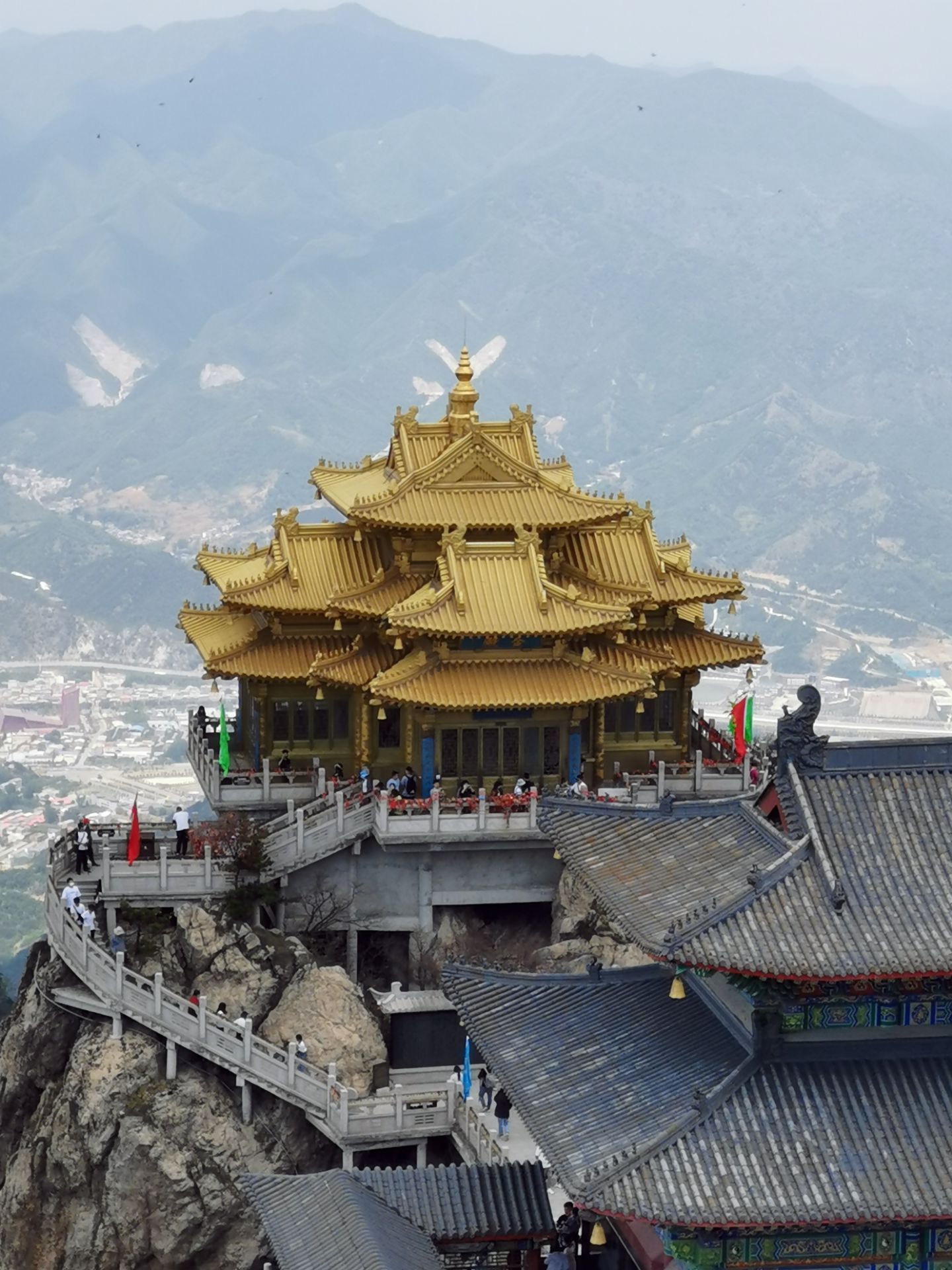 网友2020-05-16这里是游线的最高点也是游览项目的终点。特别是三座金殿主殿在中轴线,偏殿伺立左右偏峰金顶,是老君山游览区的统领级别的景观,以供奉老子的道观群落,建在山顶峭壁之上。特别是三座金殿主殿在中轴线,偏殿伺立左右偏峰。这里是游线的最高点也是游览项目的终点。