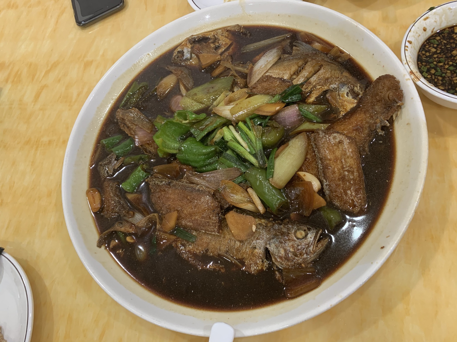 杂鱼入味,虾仁跑蛋中规中矩,佛跳墙鲜厚粘,面筋青菜碧绿,整体量大可口,适合家庭聚餐,老板娘热情...