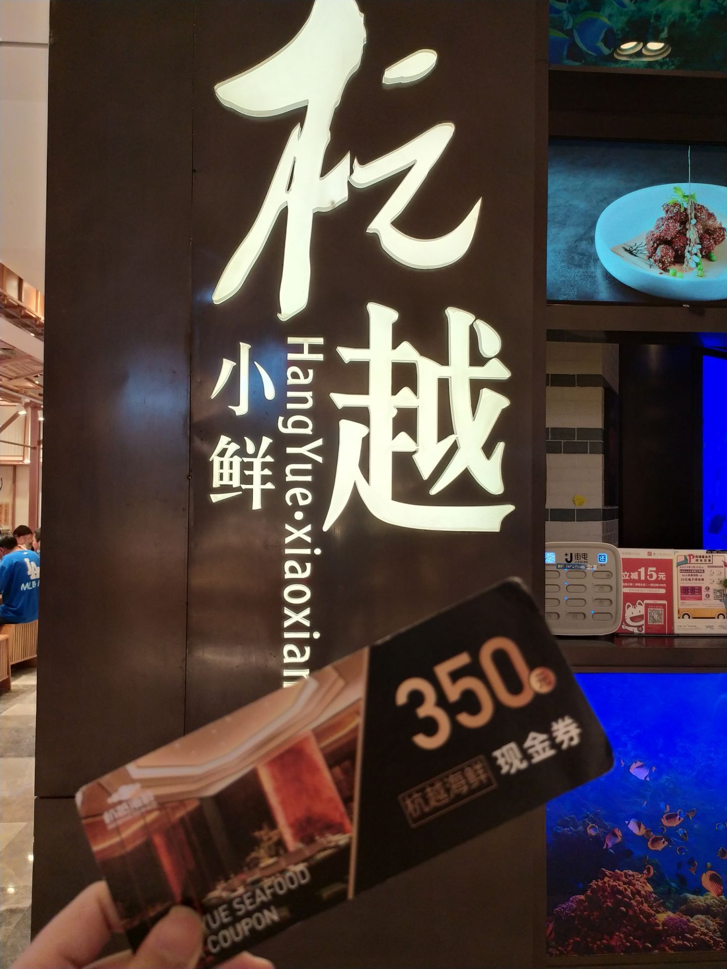【小e美食探店】宁波风味小海鲜 杭越小鲜(来福士中心店) 地址:杭州市江干区新业路228号来福士广场B1层 营业时间:10:30~14:00,16:30~21:00 【环境】这家店在来福士负一楼,算是这一层中装修和面积最大的一家餐厅了,客流量也是比较多的,有散台也有包厢,比较适合约会或者家庭聚餐,以宁波菜和杭帮菜式为主! |十里花雕醉甜虾^68RMB,用的是沼虾而非甜虾,熟醉而成,但是味道出奇的淡,就只有一点点的酒味而且咸度也是不够的,感觉醉的时间还不够,不太好吃! |特色卤大肠^58RMB,特色的杭帮卤大肠的口味,肥肠油润搭配酱汁更入味,适合配饭的一道冷菜! |海苔海龙鱼^58RMB,豆腐鱼裹上了面糊以及海苔末干炸后复炸而成,口感酥香,不过味道偏淡基本没有咸味,建议旁边搭配一小碟酱汁或者椒盐会更好! |生腌血蛤^48RMB,血蛤是宁波、温州一带比较喜欢的贝类,因体液颜色鲜红如血故名“血蛤”,只用热水汆烫十来秒就可以食用,不过和温州的姜酒血蛤做法相比,他家的生腌酱汁有点太过寡淡,提升不了血蛤本身的鲜美! |杭越鲜肉包^20RMB,一笼有三个包子,用土猪肉作为肉馅,在他们家这个点心算是比较热卖的,肉馅还算是挺多的,包子皮也是松软,基本8点不到就售罄了! |象山麻糍^20RMB,这是一道象山传统名小吃,将野草汁挤入糯米捣至年糕状,然后进行炸制撒上红糖粉,不过他们家炸的有点太硬了,搭配红糖粉显得更干,如果搭配红糖浆口感会更好一些! 【服务】店员服务态度还是比较不错的! 【人均】180RMB 推荐指数🌟🌟🌟⭐