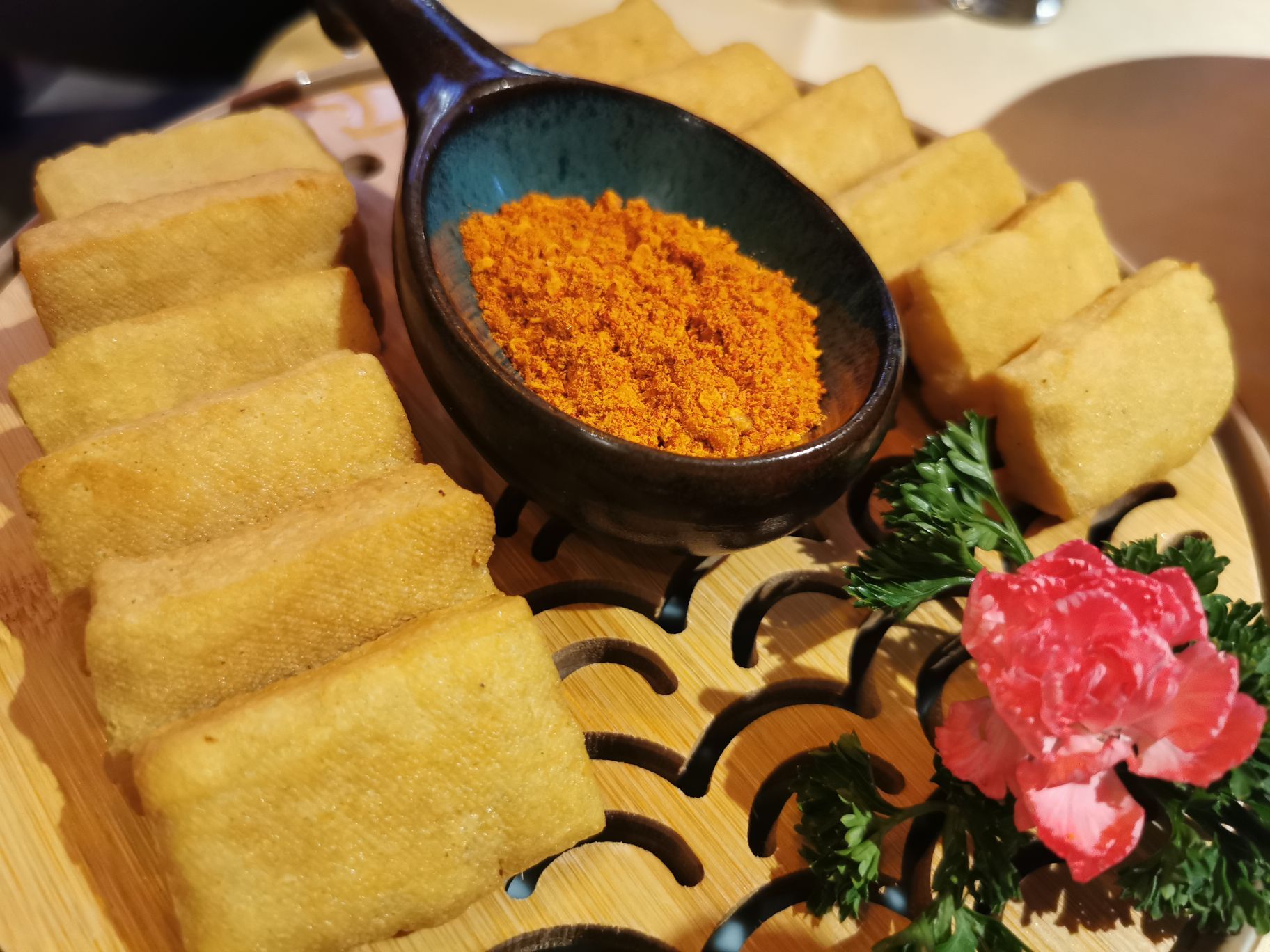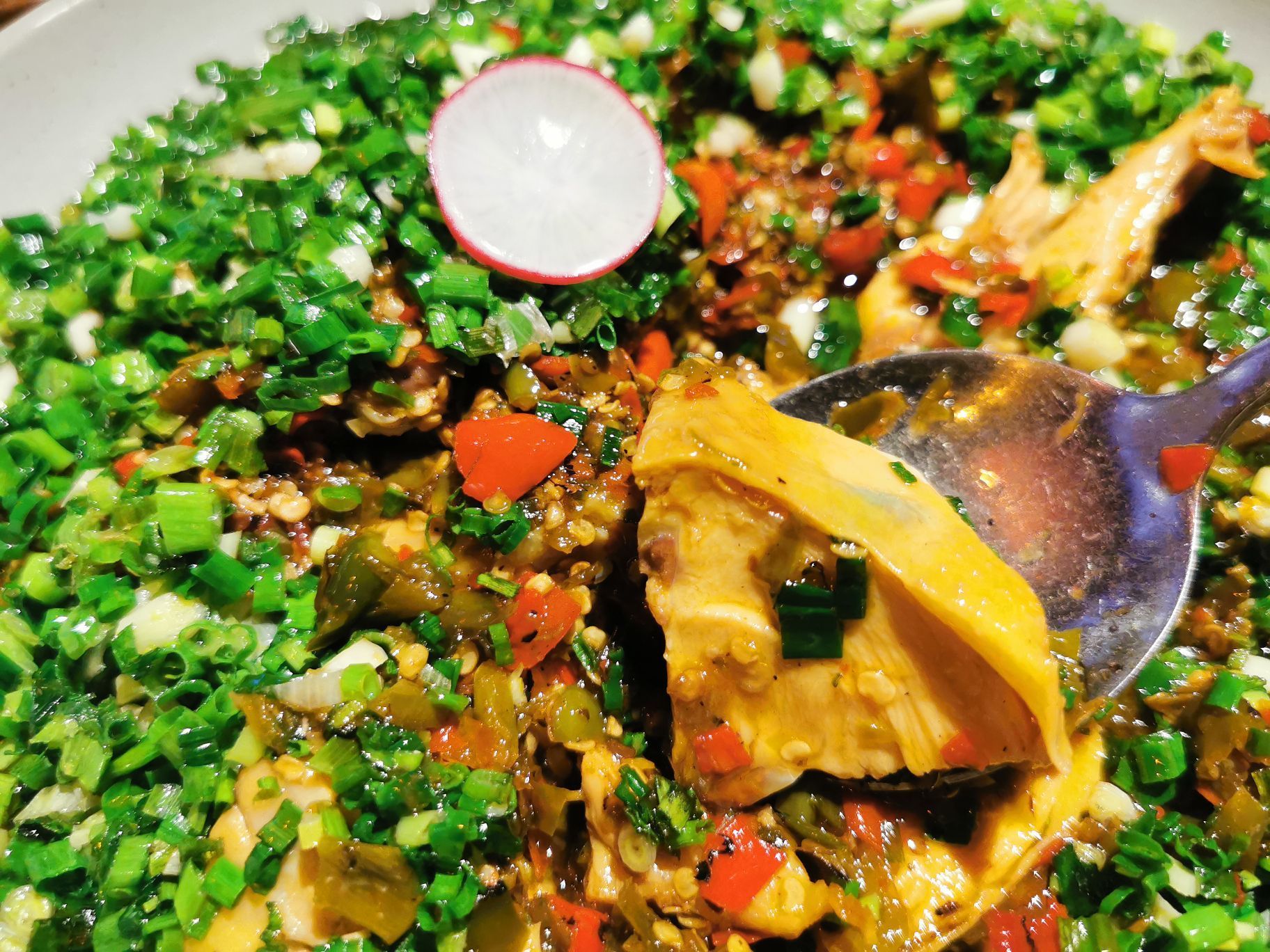 来山石榴,用这口藤椒麻辣的椒麻鸡,开启火热的夏天模式拉 一走他家就感觉非常的放松,不仅有充满名族特色的滕艺装饰,更有时下年轻人最爱的酒吧风格,我可不会告诉你,那一排排的都是贵州茅台呢[偷笑][偷笑][偷笑] 贵州菜特点就是酸辣 这道椒麻鸡绝对是招牌推荐,上来看着都是葱花还以为是葱油鸡呢,结果拌开一吃,这辣劲🤣 🤣 🤣 提神醒脑哦 更有包浆豆腐,口感层次丰富,外皮的酥,里面的豆腐却滑嫩如水[强][强][强] 最后来上一碗冰粉,解腻可口哦,麻辣开启,甜蜜结尾,完美一宴