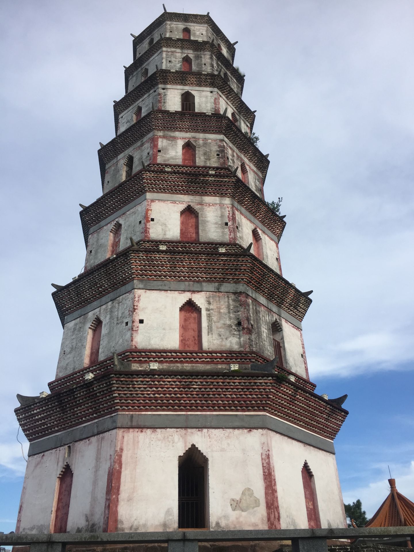 凌雲塔在梁啟超故居附近。我是在梁啟超故居遊覽時,發現後面青色山間有做造型典雅的塔,非常漂亮,就沿著塔的方向走過來,一路上是純樸的居民樓,在製作新會特產“小青柑”,一種柑橘加普洱的茶葉。 凌雲塔在山上,山不高,有條鋪的平穩又大條的道路可以一路開上山,直達塔下,只需走五分鐘的登山路就可以俯瞰新會的美麗。因為交通方便,而且塔下是一大片停車位,所以遇到好幾個家庭都是開車載孩子來玩。我則是從梁啟超故居走兩公里路到達塔區的辛苦人。 凌雲塔本身不能登塔,可以從外觀看出年代,建築風格獨具特色,很有文化意義。從凌雲塔的觀景平台,俯瞰新會地區的風景很美,遼闊樸實。 我個人滿喜歡凌雲塔,平台的風景很美,塔身蘊含歷史並且遊客稀少。