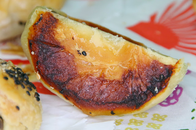 Cp值還可以,口味很多種,平均一個大約20-30元,有兩三種素食可吃,整個重量飽滿,可以感覺內餡充足,外皮酥脆像餅乾,黑糖口味過甜。買完自己要記得口味順序老闆不會幫標註,你買十個就要記十個!整體可推