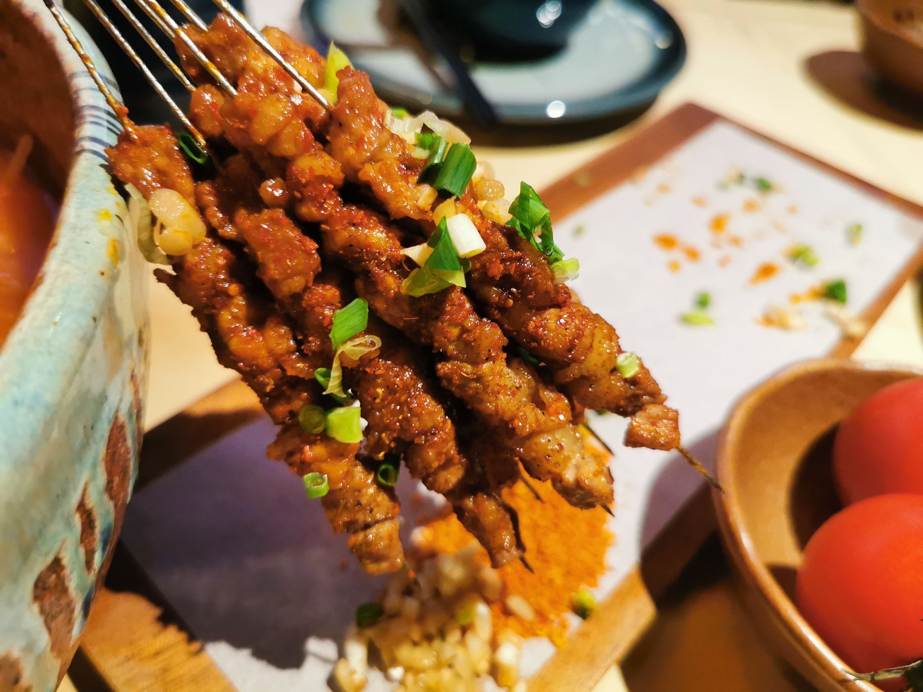 山水贵州,美味山石榴 各种元素的碰撞融合一点都不突兀,充满民族风情的编藤 与现代风格的酒吧,相互映衬,如同他家的菜肴一样,传统与创新 宫爆板筋 红红火火,板筋很脆爽不错,都是软骨哦 腊味三拼 山里人怎么能少了这美味的腊味呢,推荐里面的血肠很不错哦 一群肉食者还不够,那就再来一份烤肉串,哇塞不输给新疆的风味哦,不过只有猪肉的了,有点遗憾了,下次可以尝试他家的牛肉串! 趴趴鼓起的肚子,好满足哦