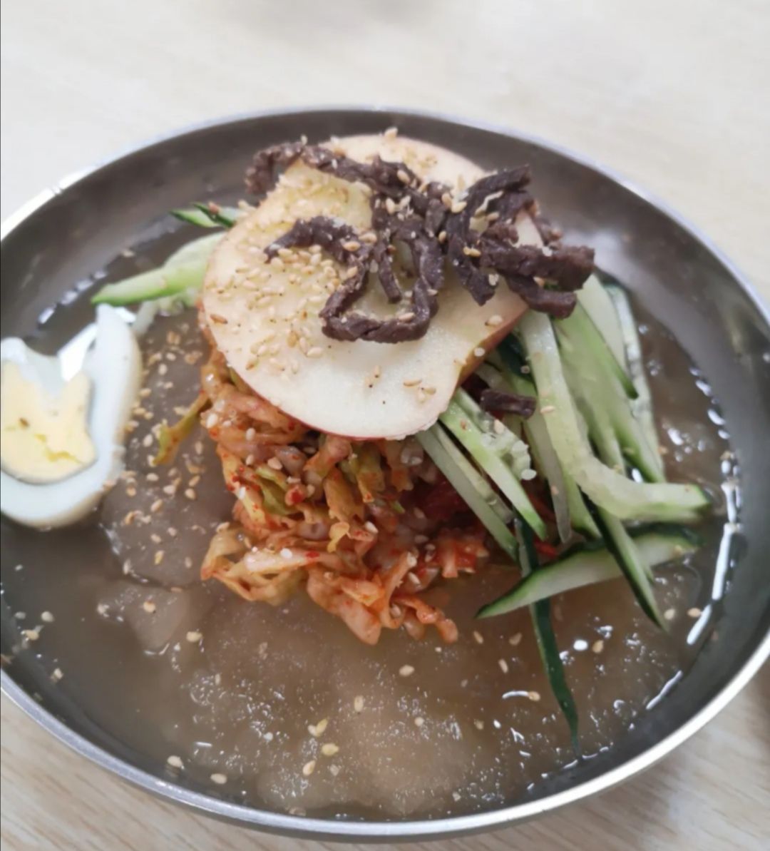 网友2020-05-21炒年糕,量大,挺好吃的。泡菜饼一点不腻,很好吃,很香强烈推荐泡菜饼和冷面,冷面是招牌菜,上来很惊艳,很韩式,把料混合,冰凉爽口五星好评。泡菜饼一点不腻,很好吃,很香。炒年糕,量大,挺好吃的