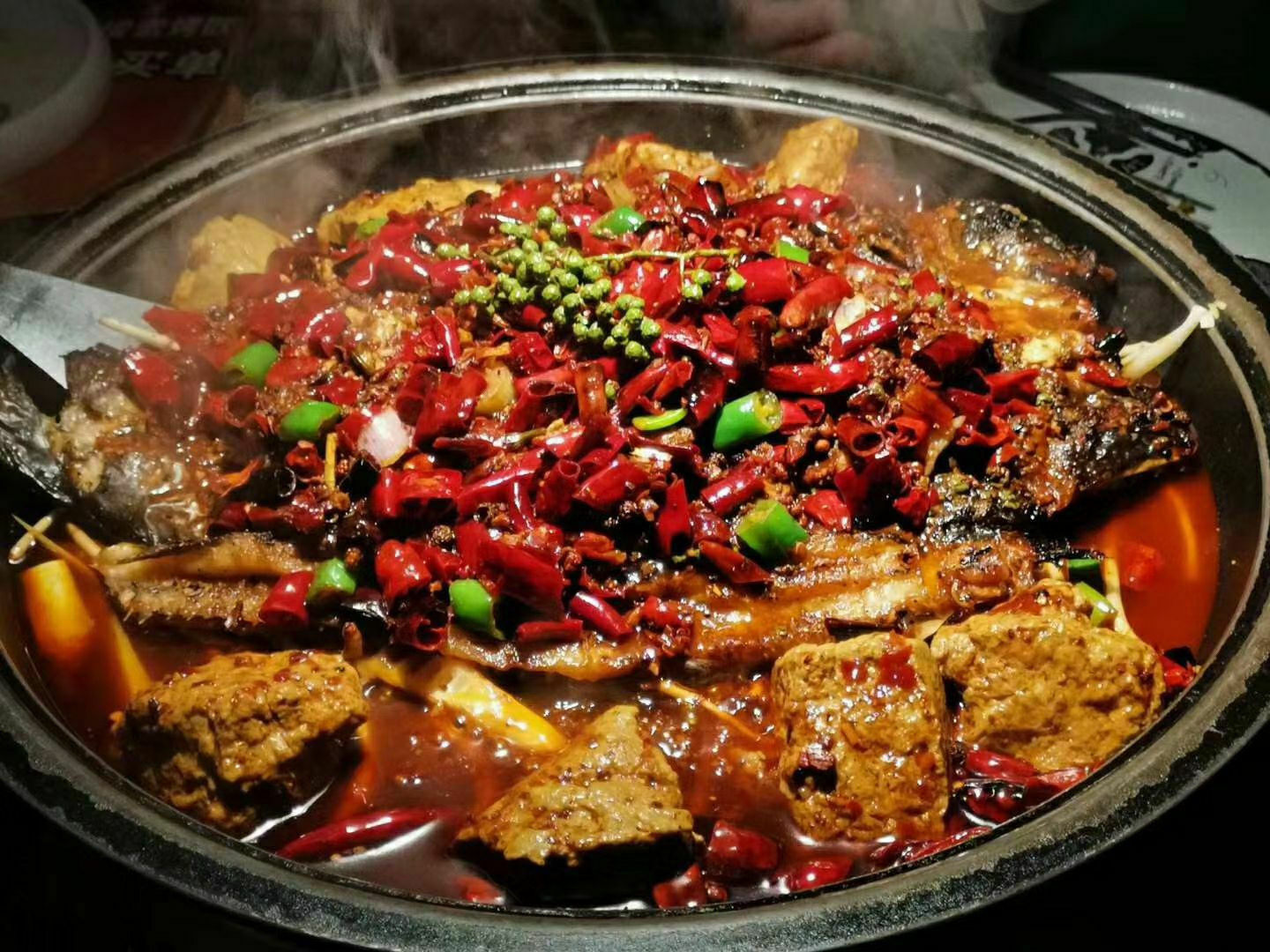 里面上座率90%味道还是依旧杠杠的[调皮]点的他家的经典麻辣烤鱼(黔鱼)129一条麻辣鲜香……...