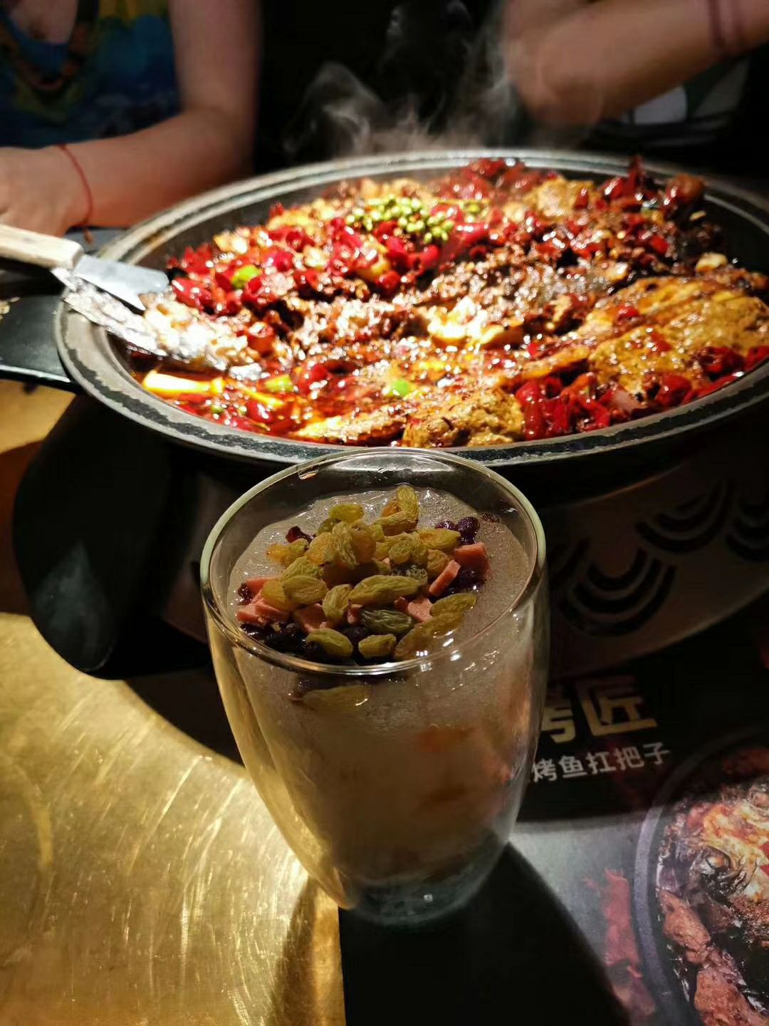 好久没到烤匠吃,上次去烤匠还是两年前吧这家店的生意非常好,通常都要排队都快下午2点了,里面上座率90%味道还是依旧杠杠的[调皮]点的他家的经典麻辣烤鱼(黔鱼)129一条麻辣鲜香……里面的黑豆花嫩而入味一个字:好吃[调皮][调皮][调皮]因为麻辣,所以会在就餐过程每人送一份椒麻冰淇淋